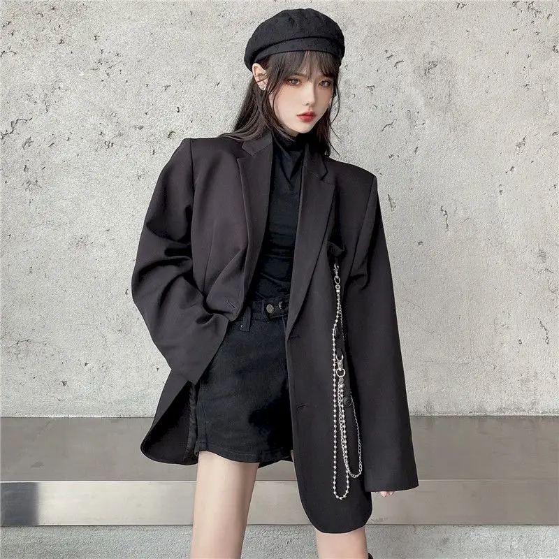 Новая Корейская версия женский модный темно-черный ретро и тонкий жареный уличный костюм куртка женская 2021 Весна и Осень Свободный A