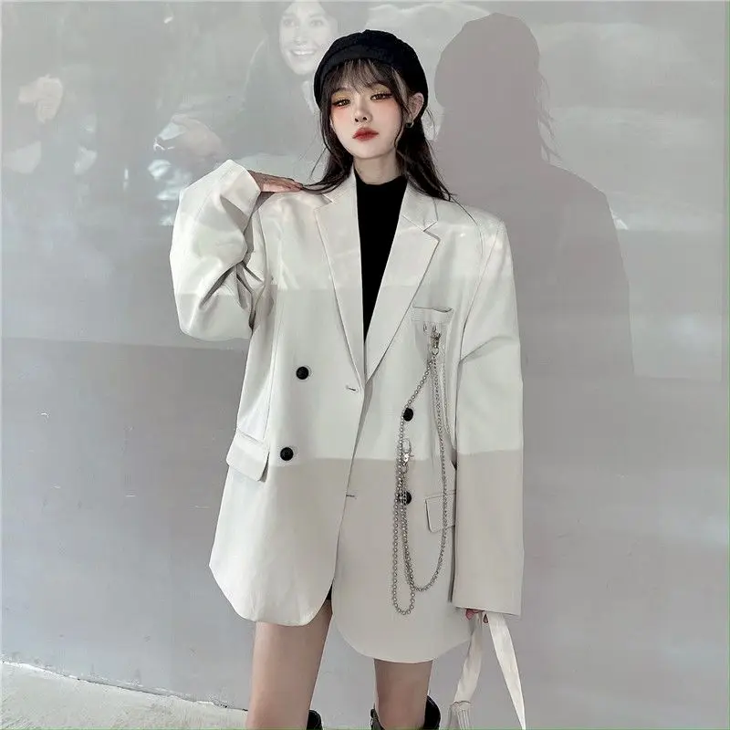 Женский двубортный блейзер в Корейском стиле, повседневный Свободны...