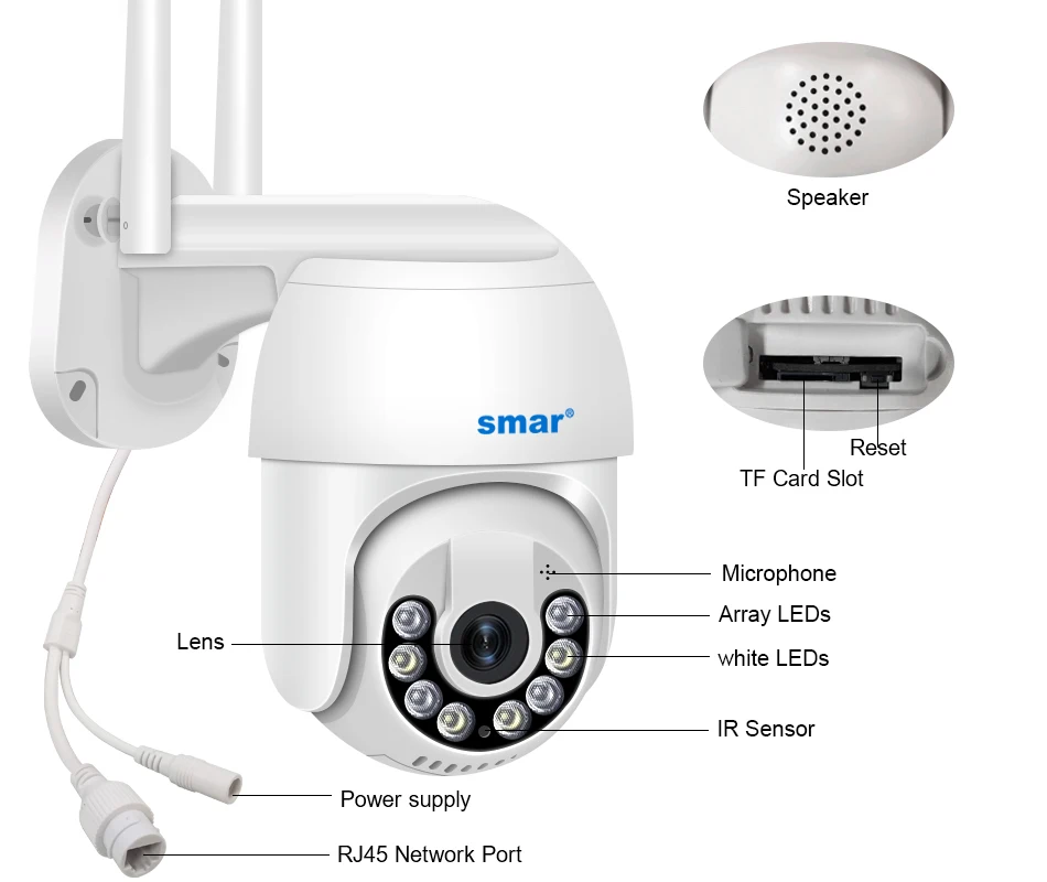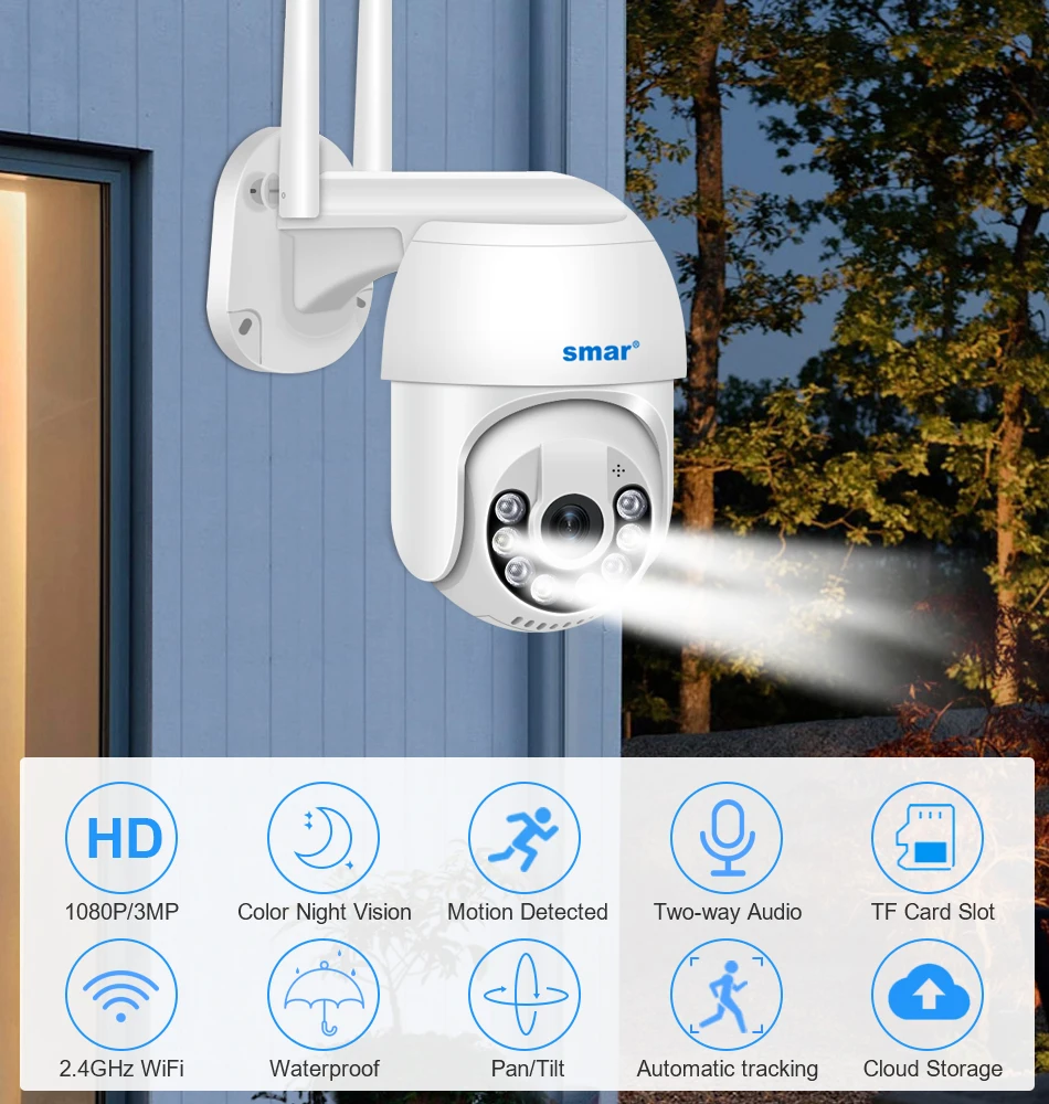 IP-камера видеонаблюдения SMAR 1080P Беспроводная с поддержкой Wi-Fi и PTZ