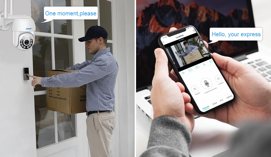 Камера имеет встроенный микрофон и динамик/новые динамики с громким объемом.Вы можете поговорить с любым близким к камере (предупредите кого-нибудь, чтобы оставить свой дом)