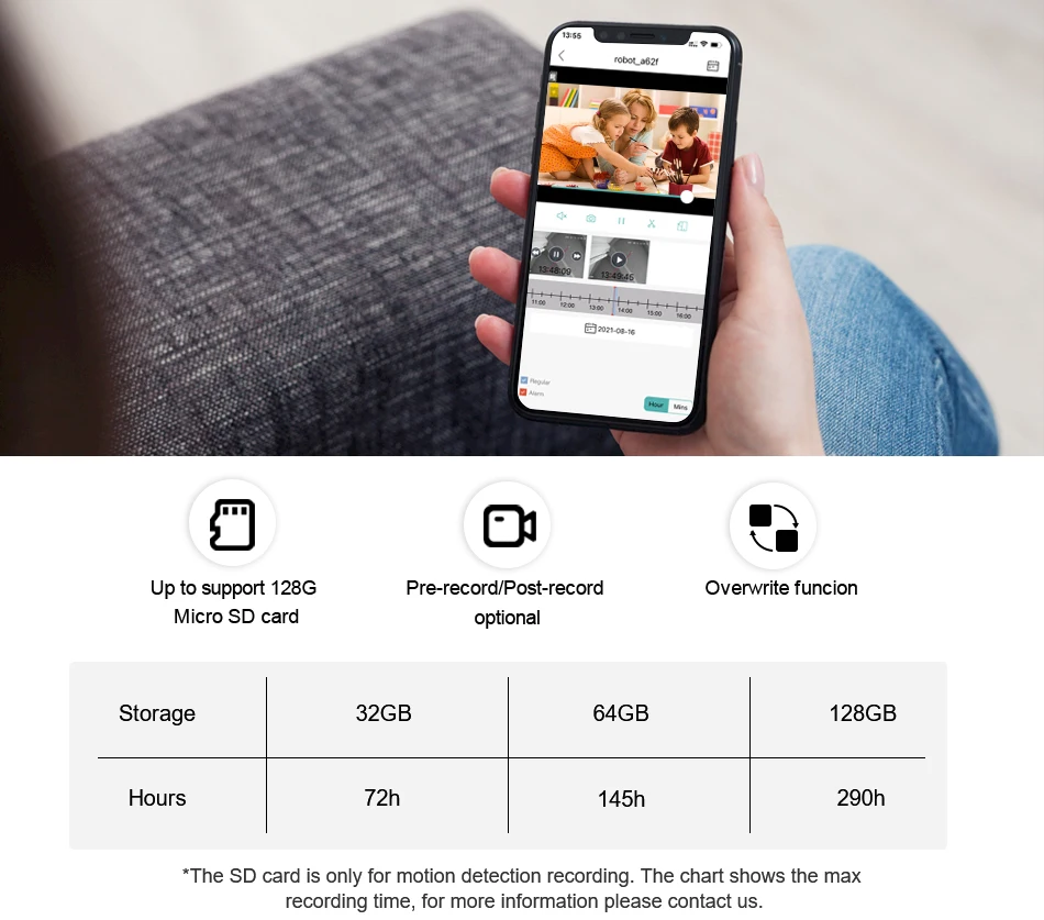 Бесплатная доставка в течение 30 дней на Облачное хранилище и Max 128G SD карты запись, безопасность данных становится все более стабильным. Если вы хотите продолжать использовать облачный сервис, вам просто нужно заплатить за него, если вам не нужно использовать, он прекратит его автоматически, когда вы не оплатите плату.