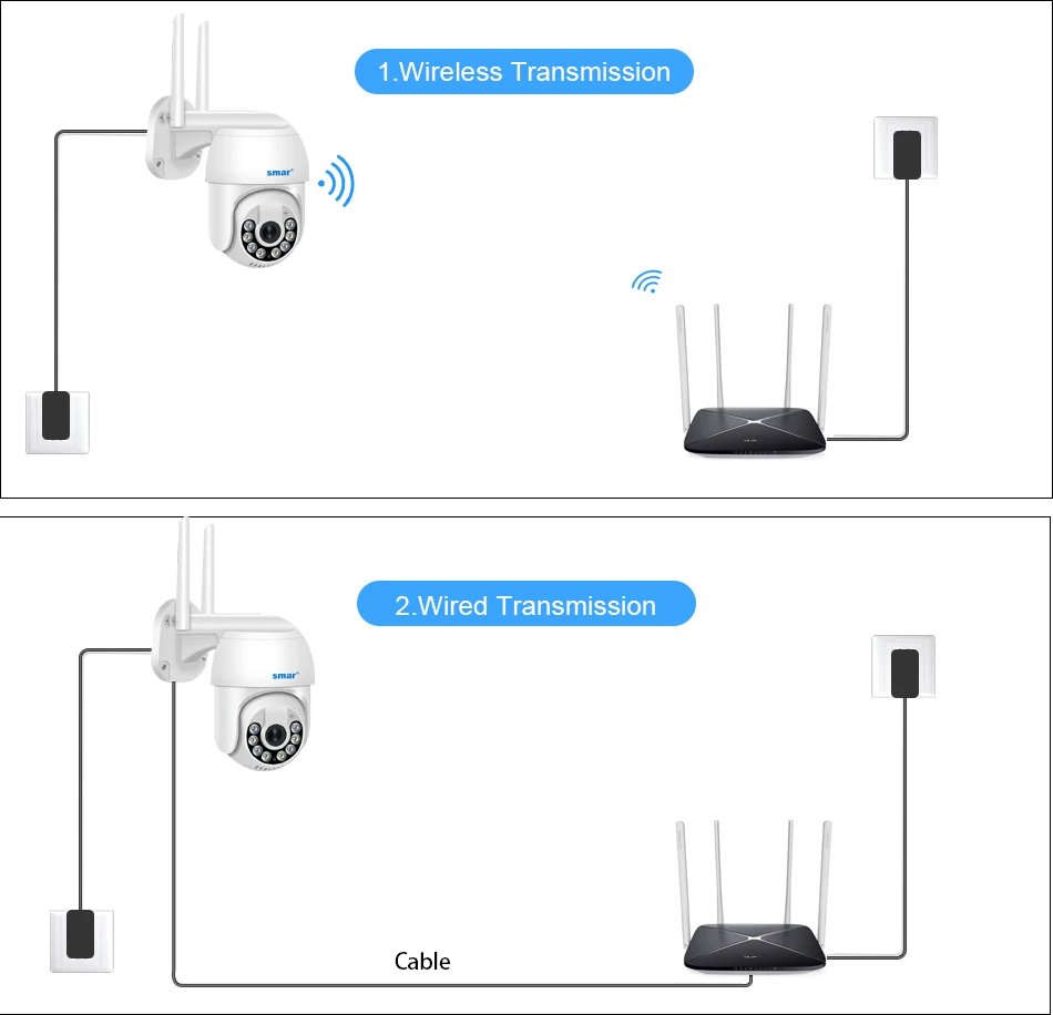Вы можете выбрать удобное соединение по вашему желанию. Иногда у вас может быть только один способ подключения камеры, не волнуйтесь, эта камера поддерживает беспроводное и проводное соединение одновременно.