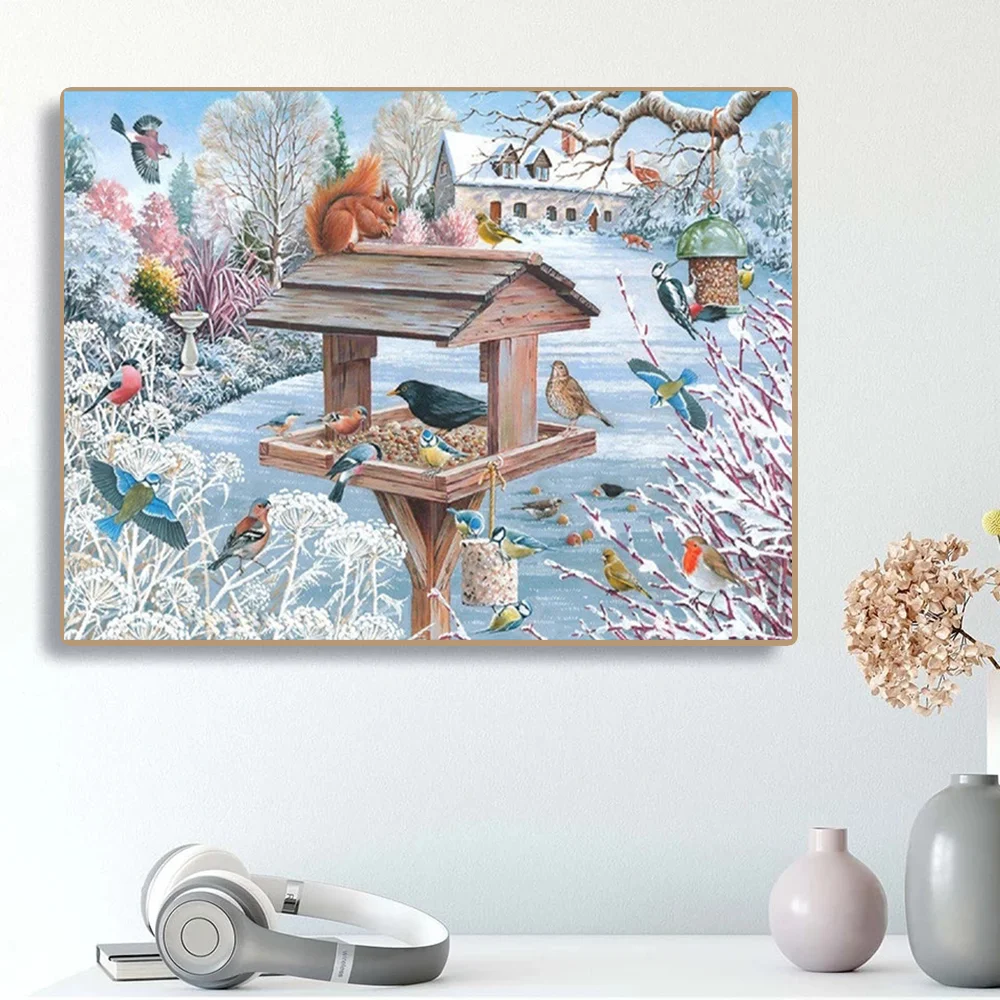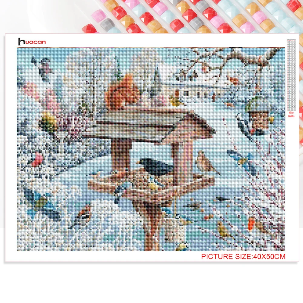 Huacan новая алмазная живопись Птица Дом белка Алмазная мозаика вышивка пейзаж Искусство и ремесла украшение спальни