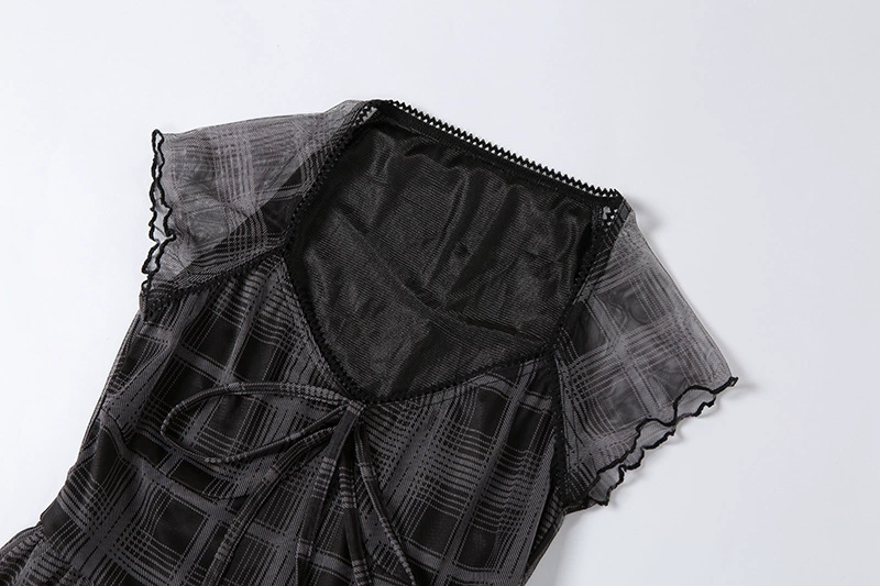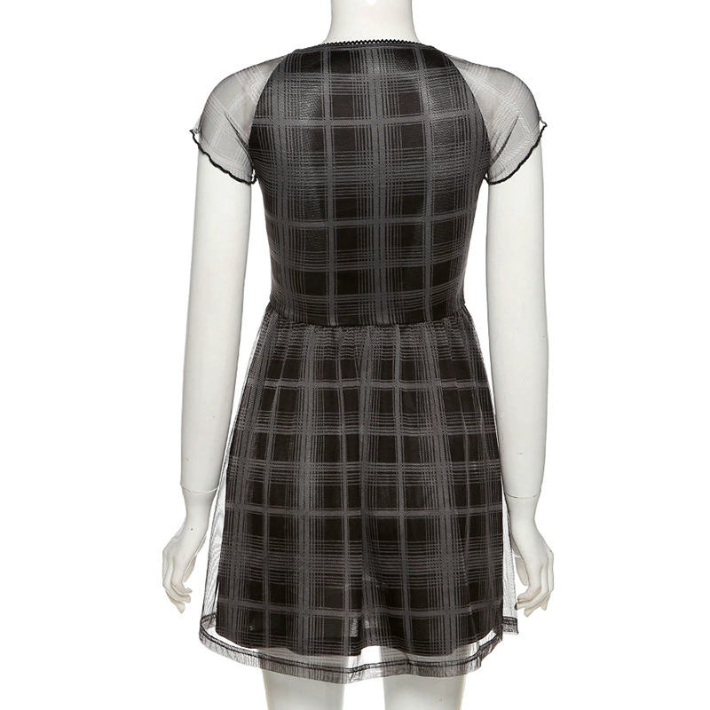 Y2K EGIRL E-girl эстетичное клетчатое Сетчатое черное платье с прин...