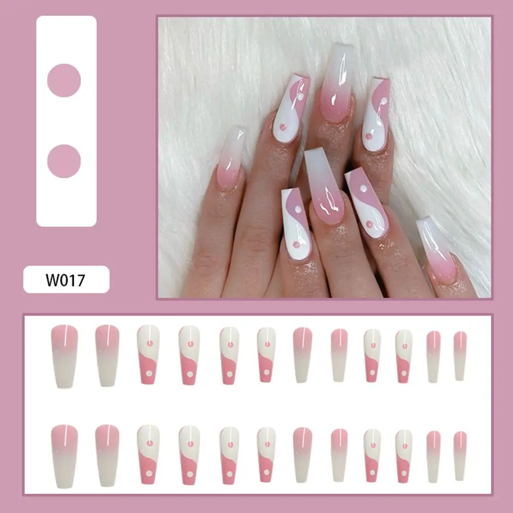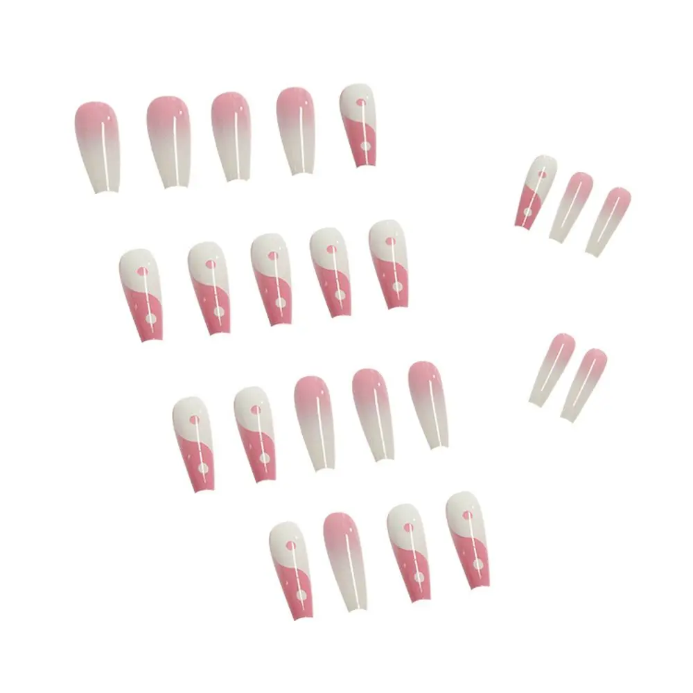 24 шт., розовые накладные ногти с рисунком Taiji, Длинные накладные...