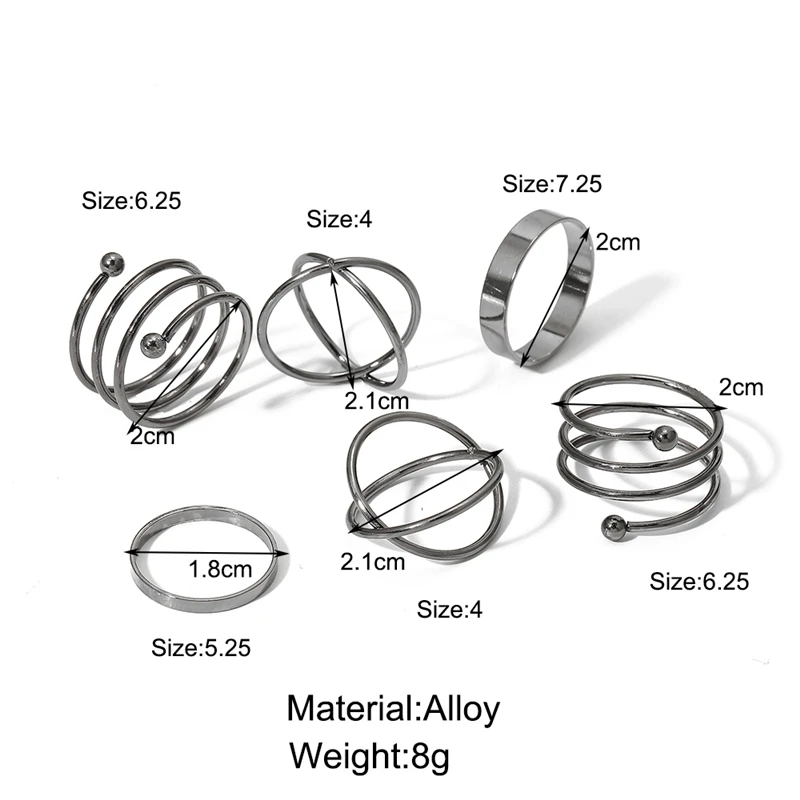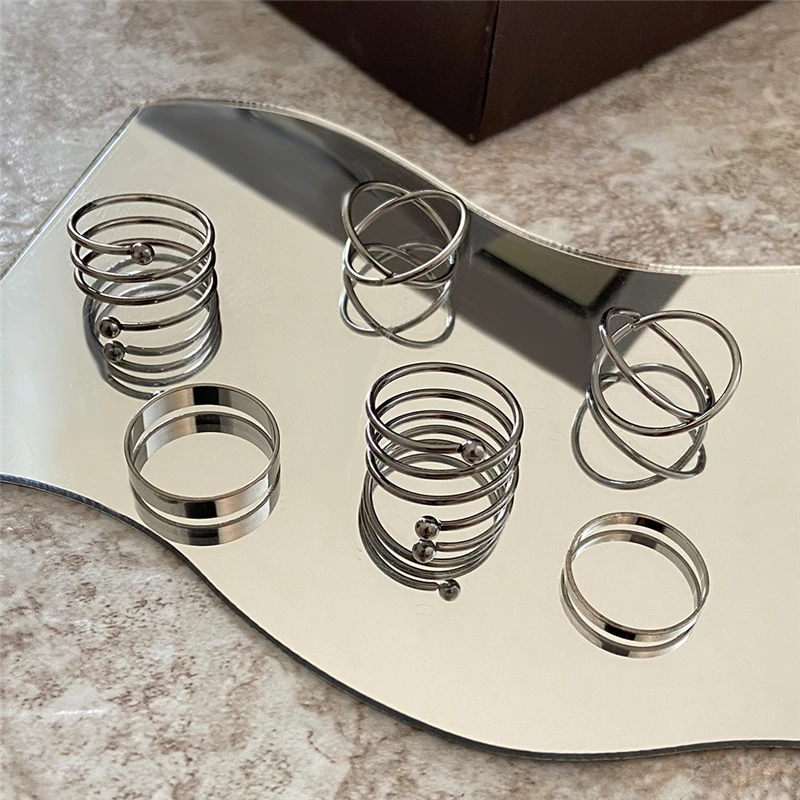 Кольца на палец в стиле панк, 6 шт.компл., минималистичные гладкие ...
