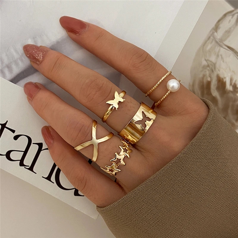 Набор Колец золотого цвета в стиле хип-хоп для женщин и девушек, Ме...