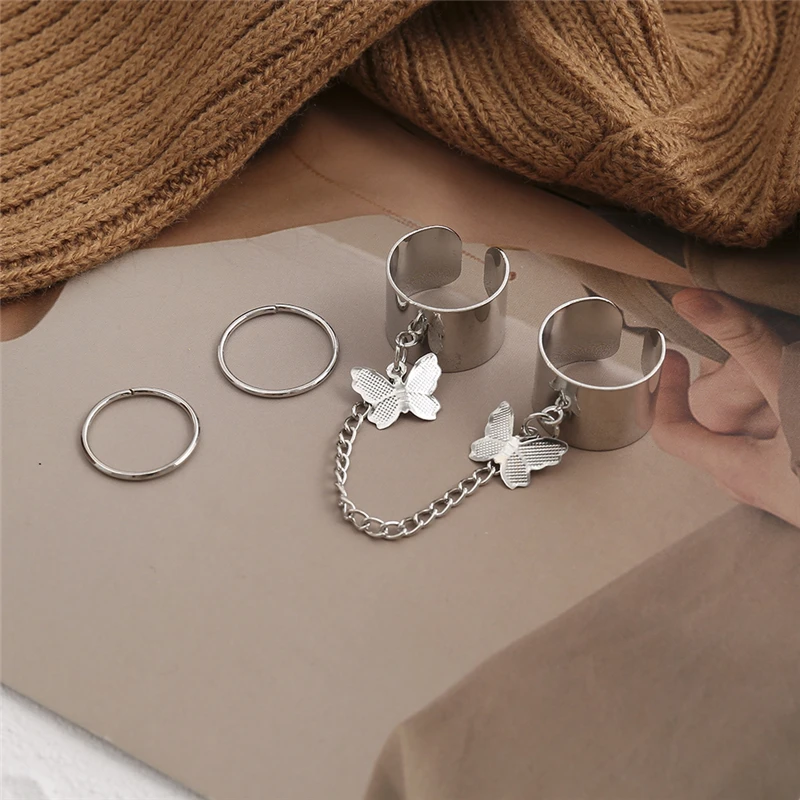 Набор колец в стиле хип-хоп с золотой цепочкой для женщин и девушек...