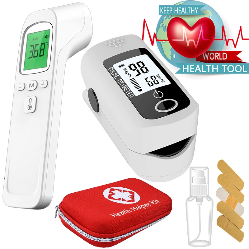 Медицинский портативный монитор здоровья, Пульсоксиметр PR SPO2, Бесконтактный инфракрасный термометр для лба и ушей, тип батареи