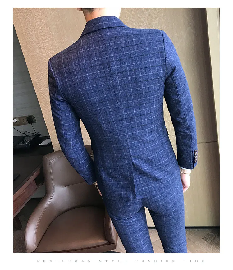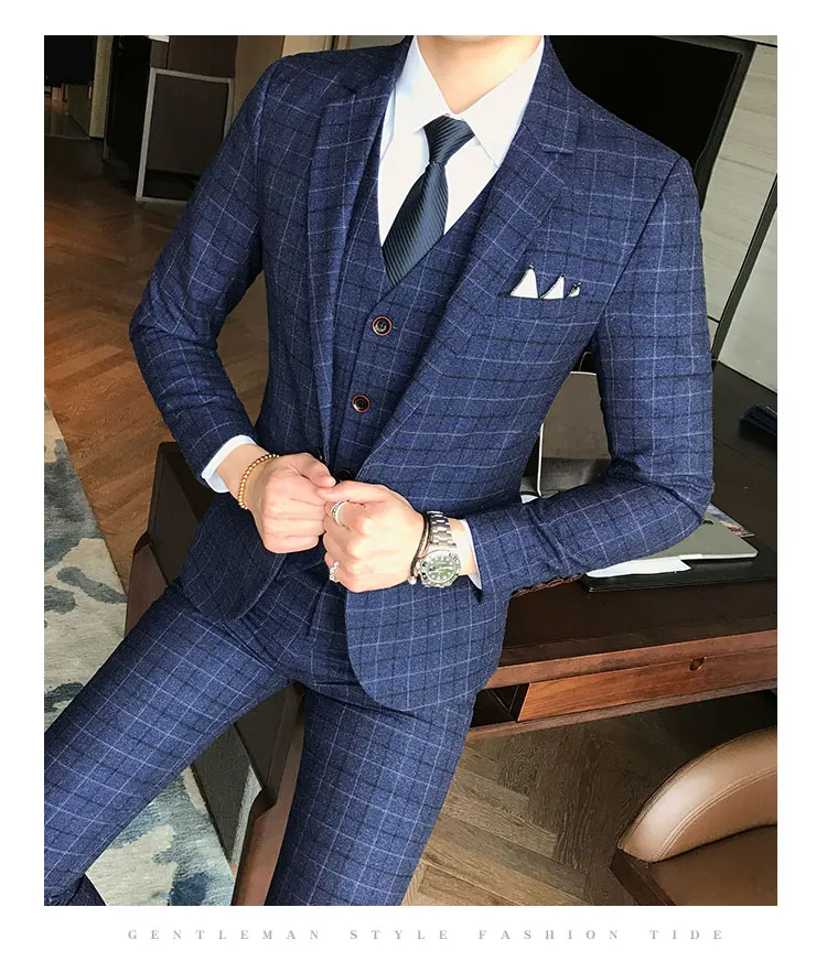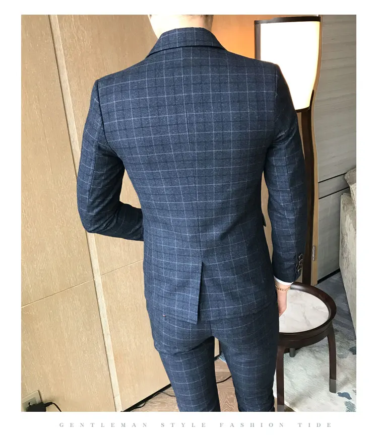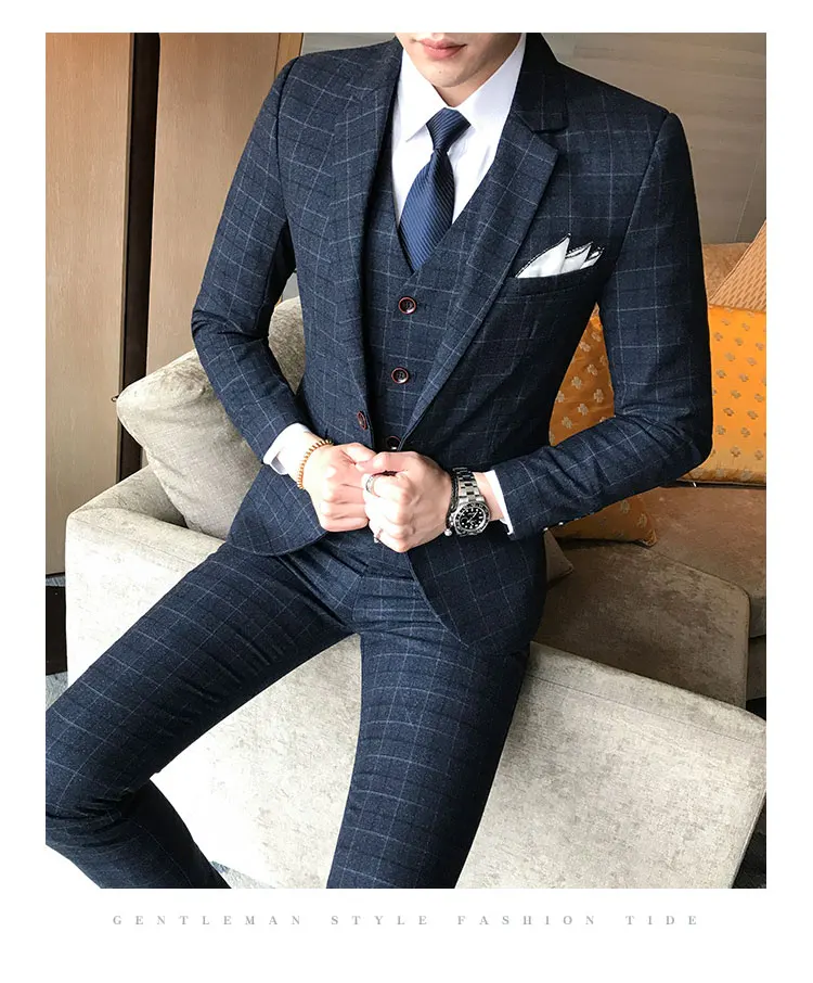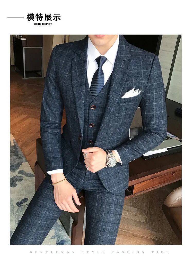 Роскошный мужской костюм из 3 предметов модный эксклюзивный клетчатый Свадебный деловой повседневный мужской блейзер большого размера свадебный костюм