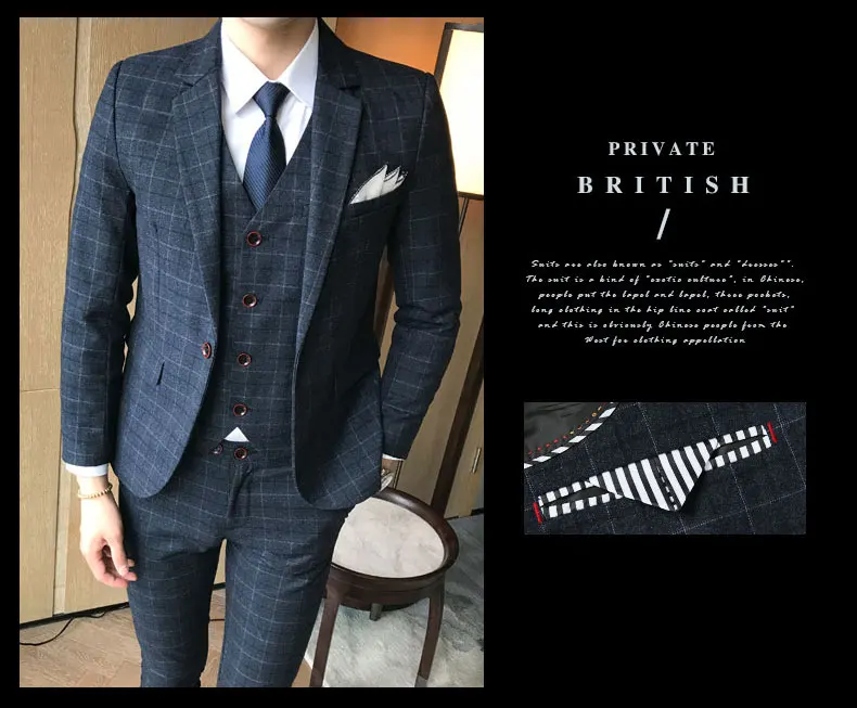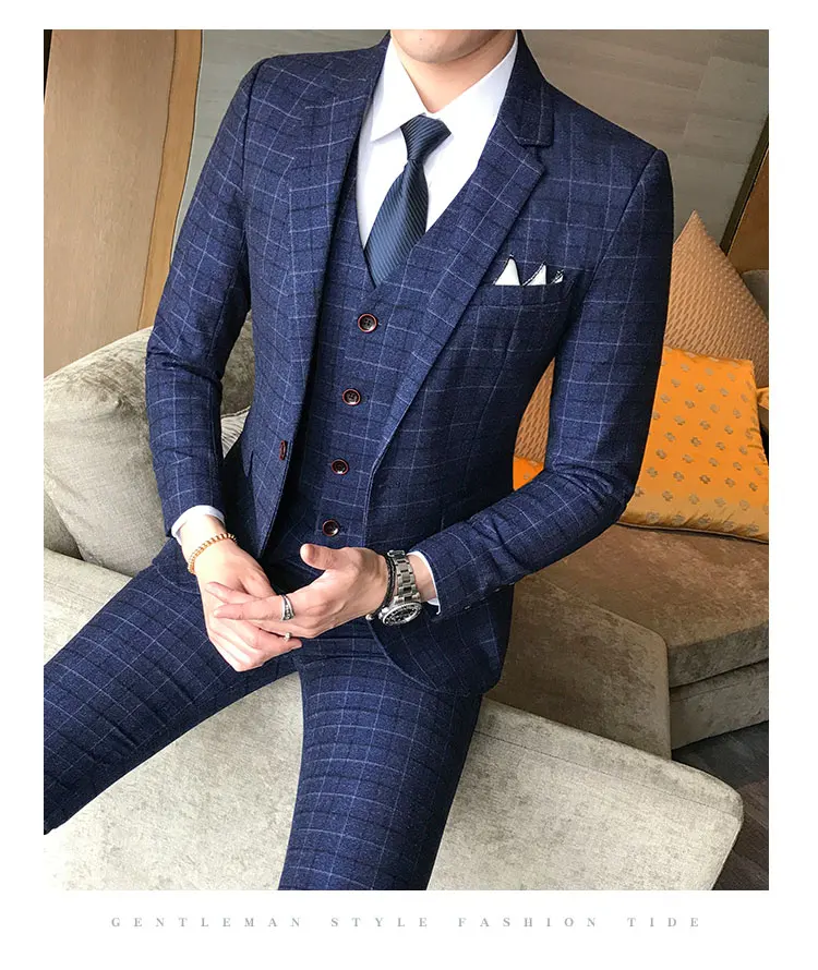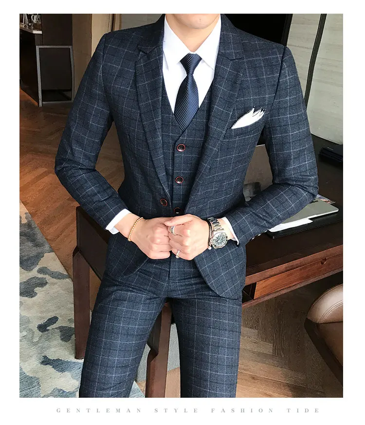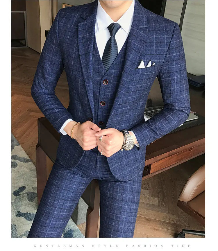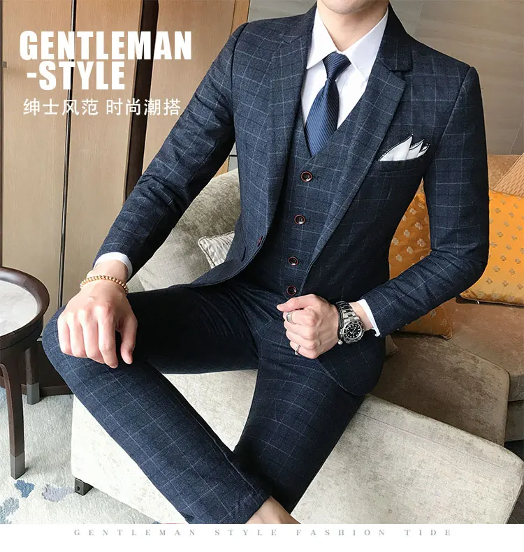 Роскошный мужской костюм из 3 предметов модный эксклюзивный клетчатый Свадебный деловой повседневный мужской блейзер большого размера свадебный костюм
