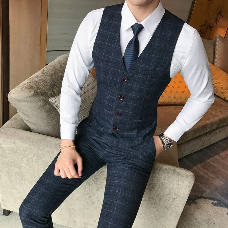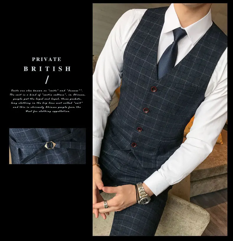 Роскошный мужской костюм жилет в клетку, брюки 2019, Мужская официа...