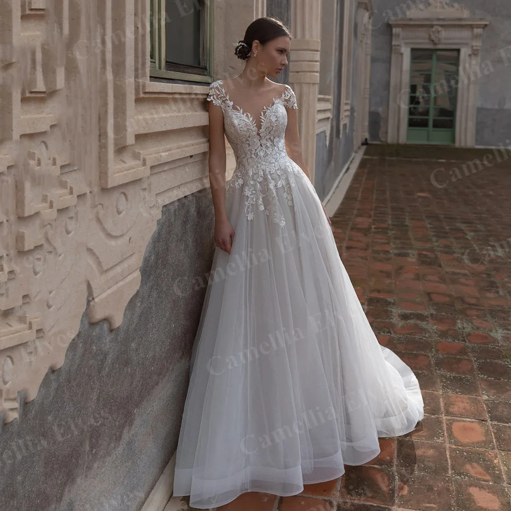 Женское свадебное платье с кружевной аппликацией, романтическое ТРАПЕЦИЕВИДНОЕ платье с рукавами-крылышками, женское платье невесты цвета белой и слоновой кости