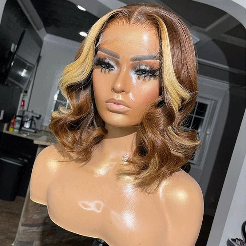 Хайлайтер медовая Блондинка кружевной передний парик тела волны короткий боб бразильские волосы Реми человеческие парики для женщин волнистые T Часть Кружевной парик doors