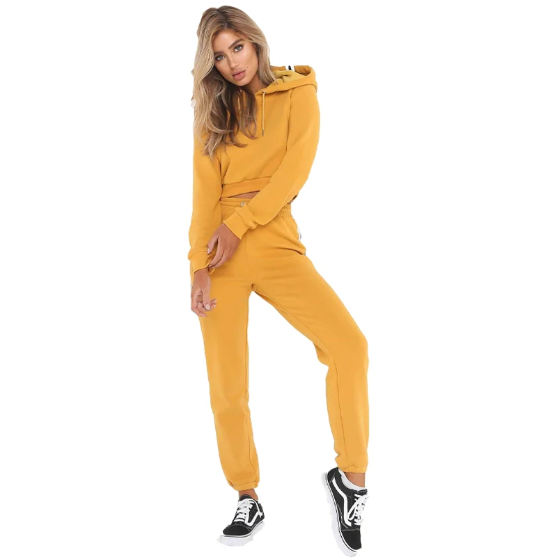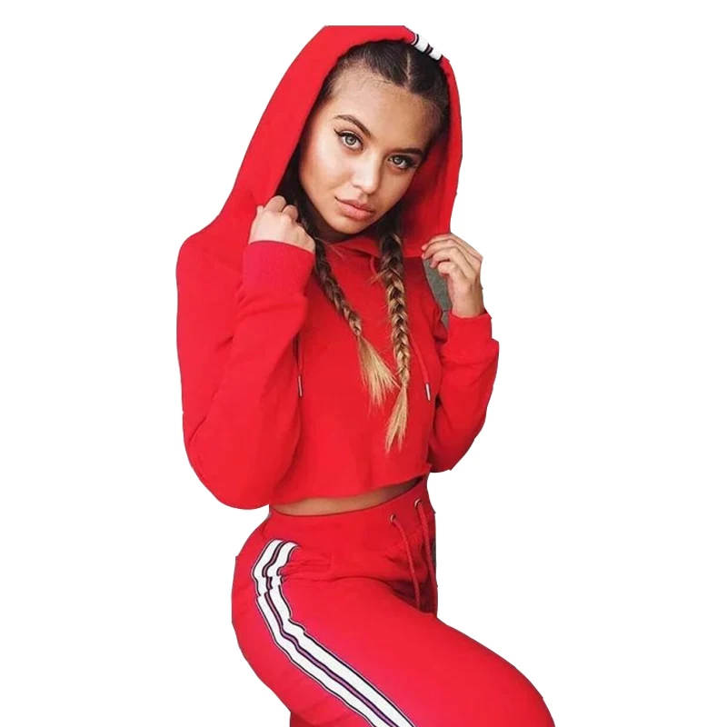 Женский спортивный костюм, повседневный спортивный костюм, модные толстовки и штаны, комплект из двух предметов, привлекательная укороченная толстовка, флисовая женская одежда с капюшоном