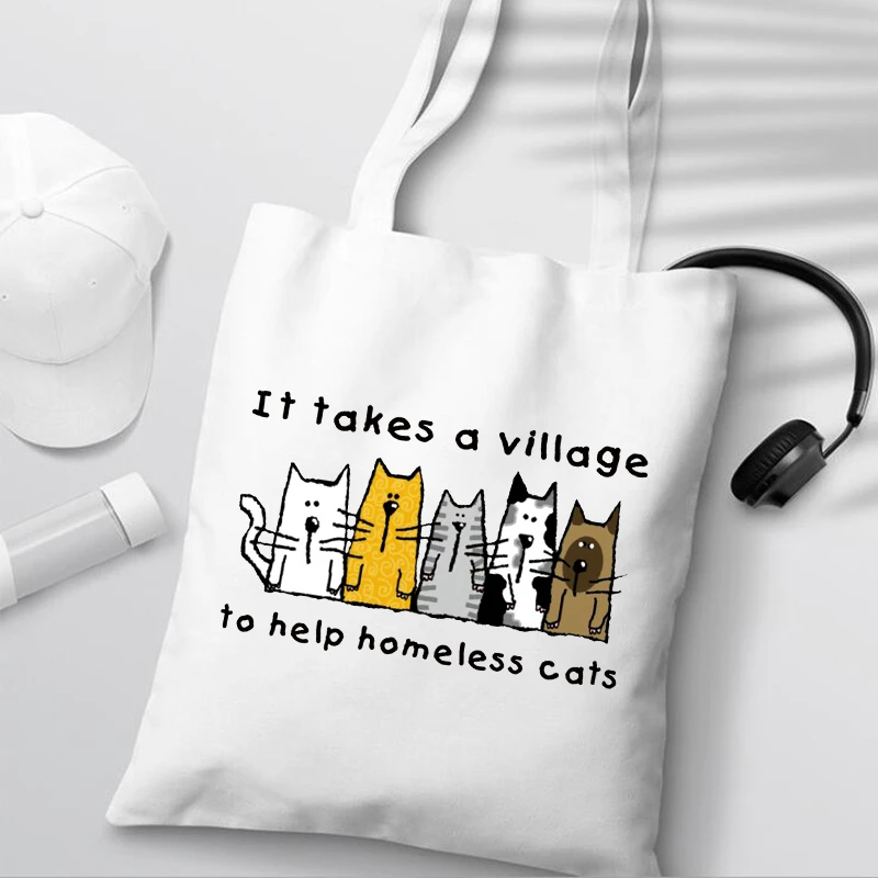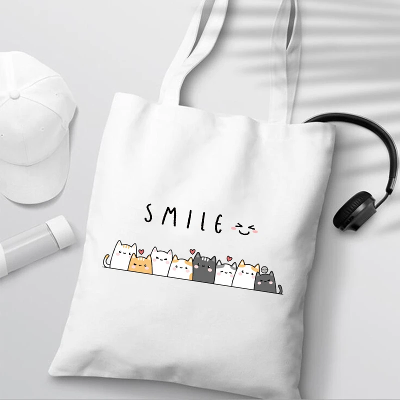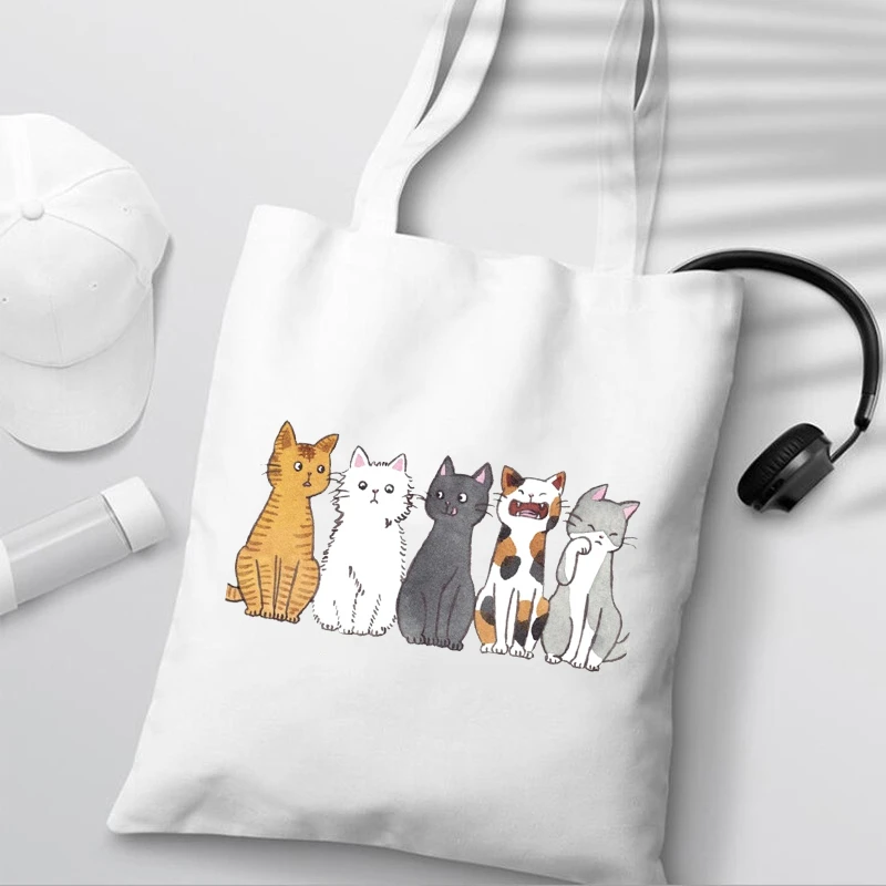 Сумка-шоппер Женская холщовая в стиле Харадзюку, забавная Сумочка для покупок с милым котиком и граффити, саквояж на плечо в стиле хип-хоп