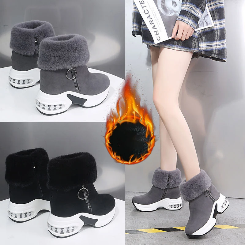 Ботинки женские на высокой танкетке, теплые меховые кроссовки, удоб...