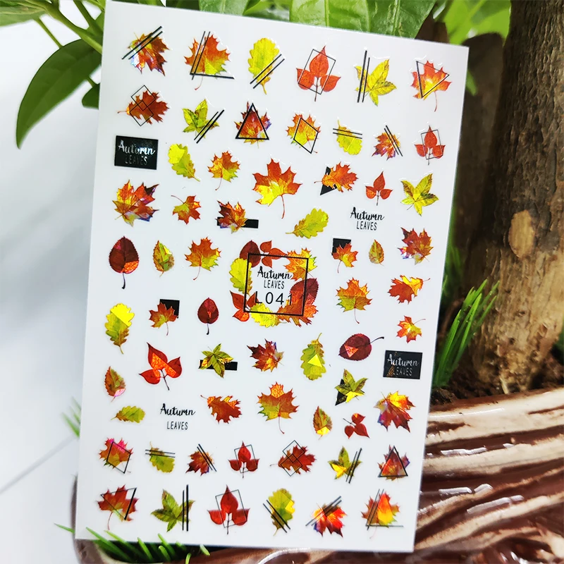 3D наклейки для ногтей, водостойкие блестящие наклейки, наклейки для ногтей, кленовые листья, Геометрические линии, украшение для ногтевого дизайна, Аврора, серебристый дизайн