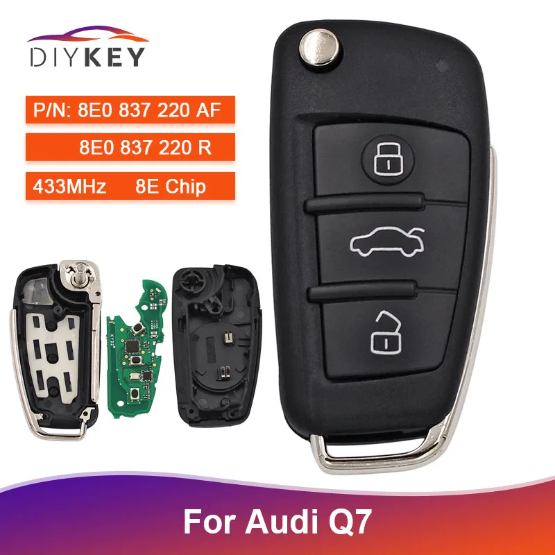 3 кнопочный дистанционный ключ 433 МГц с 8E чипом для Audi Q7 P/N: 8E0 837 220 AF / 8E0 837 220 R без ключа Fob
