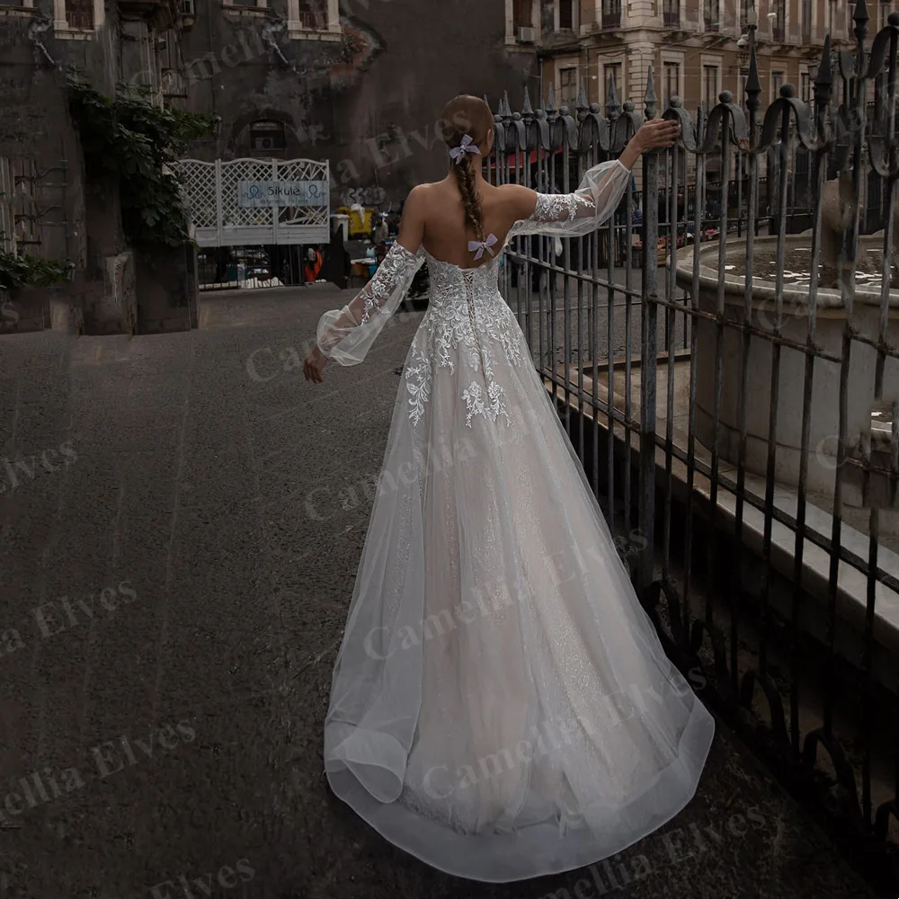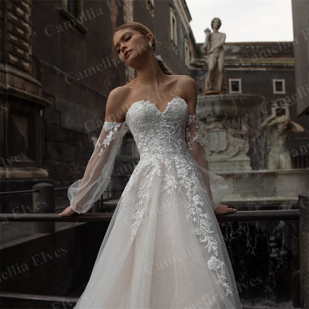 Романтические свадебные платья с пышными рукавами, Кружевная аппликация, трапециевидный Женский корсет без бретелек, свадебное платье