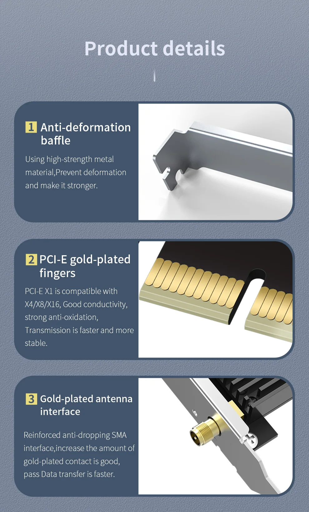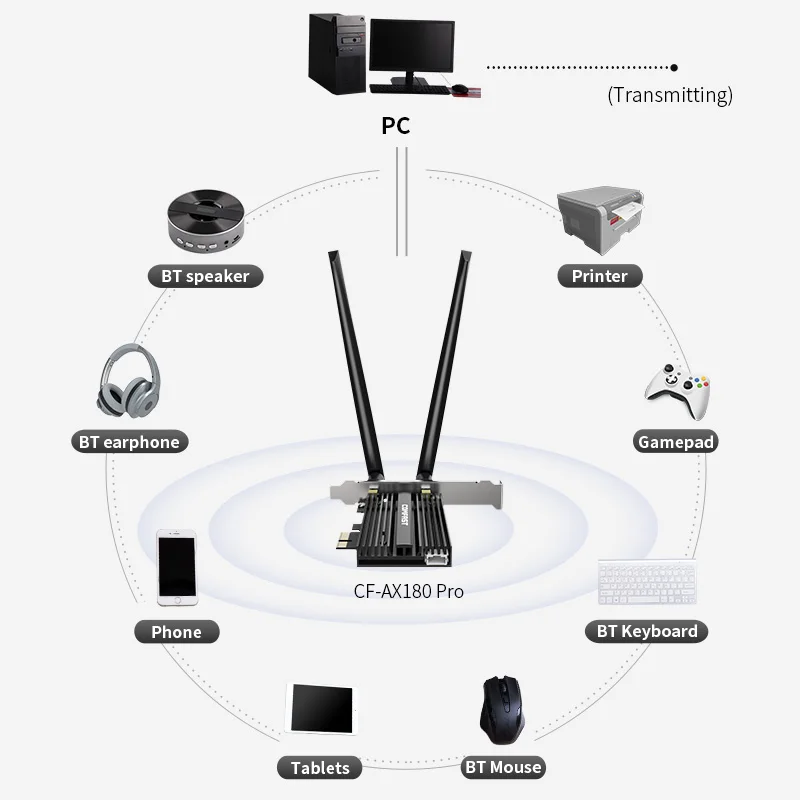 CF-AX180 Pro:WiFi6BT5.21800 Мбит/с двухдиапазонный 2,4G и 5 ГГцPCI-E сетевая карта Поддержка IEEE 801.ax с2 * 5dBi антенны и радиатор