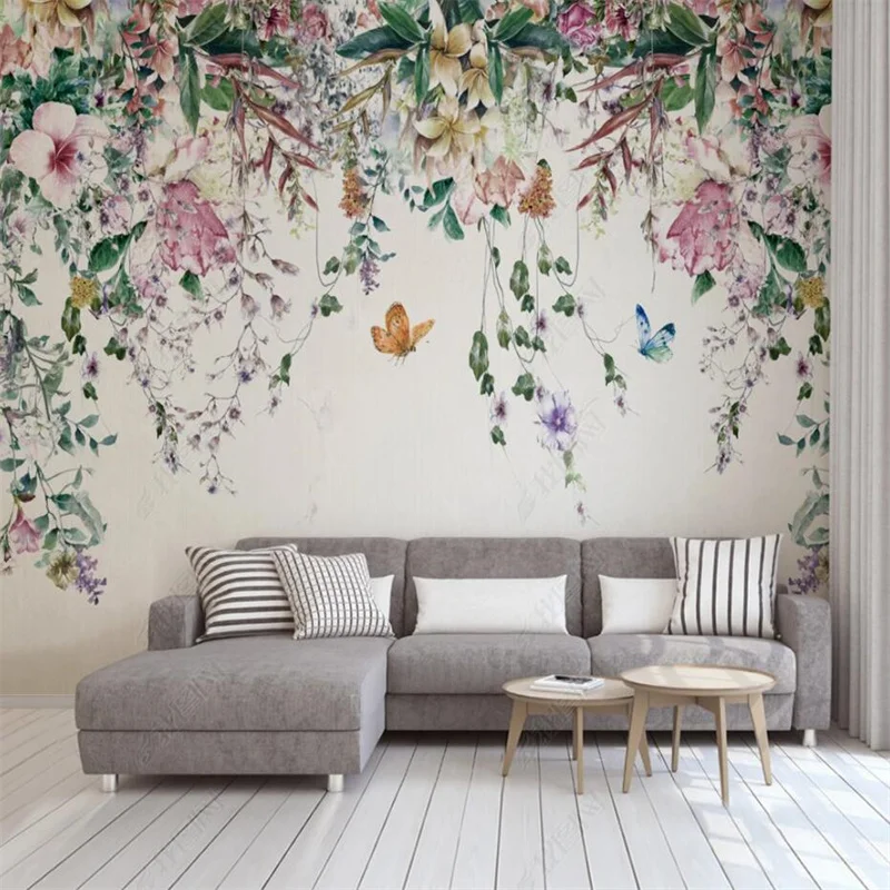 Современная свежая Акварельная лоза цветок 3D настенная бумага на заказ роспись цветочный домашний декор настенная бумага для спальни Декор настенная бумага