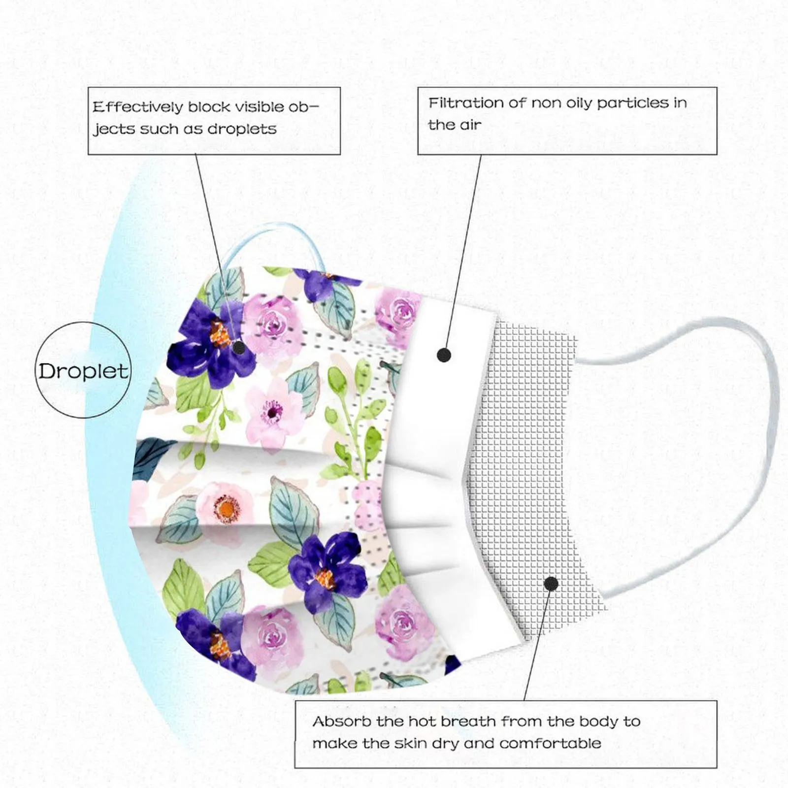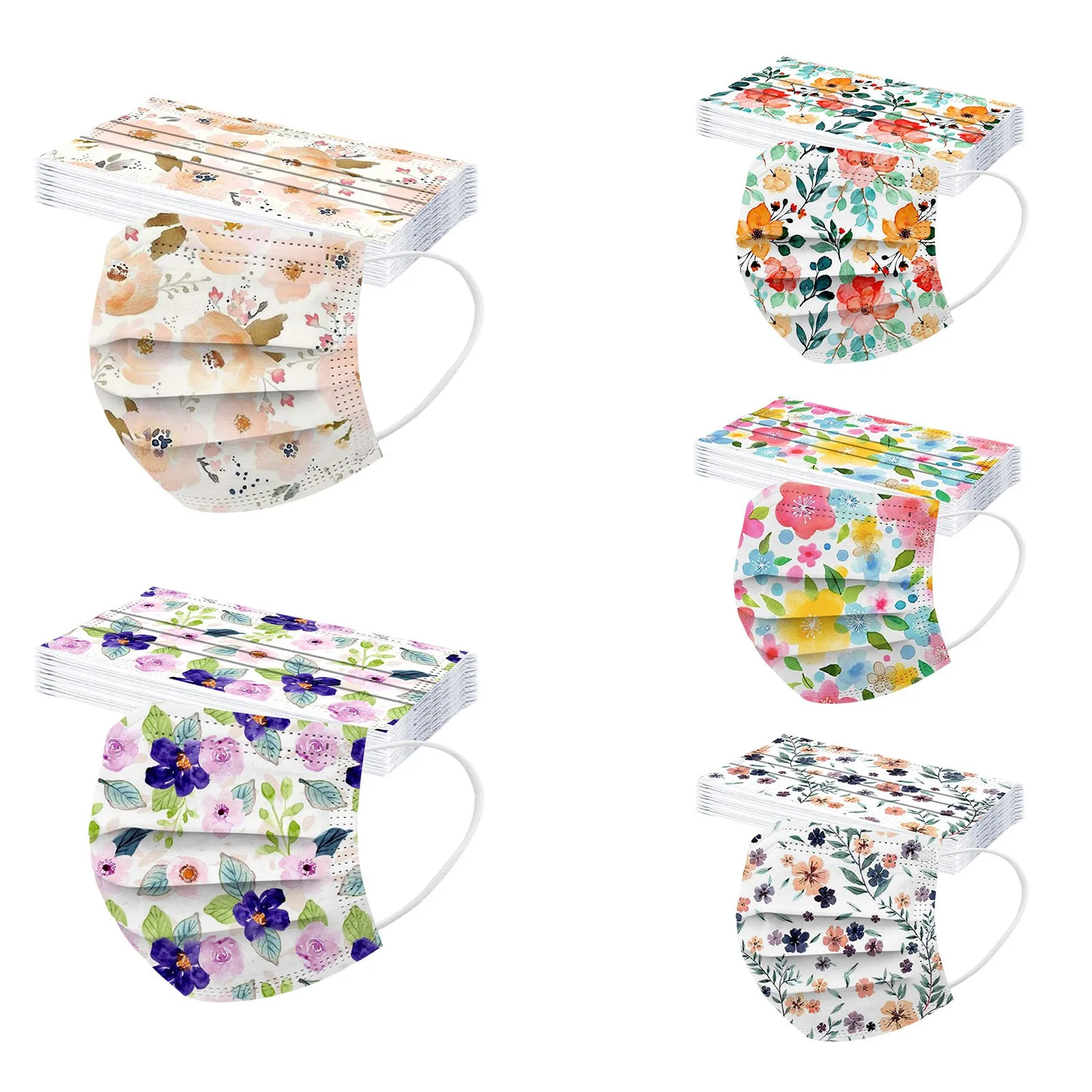 50 шт. одноразовая маска для лица, маски для взрослых с цветами, 3-...