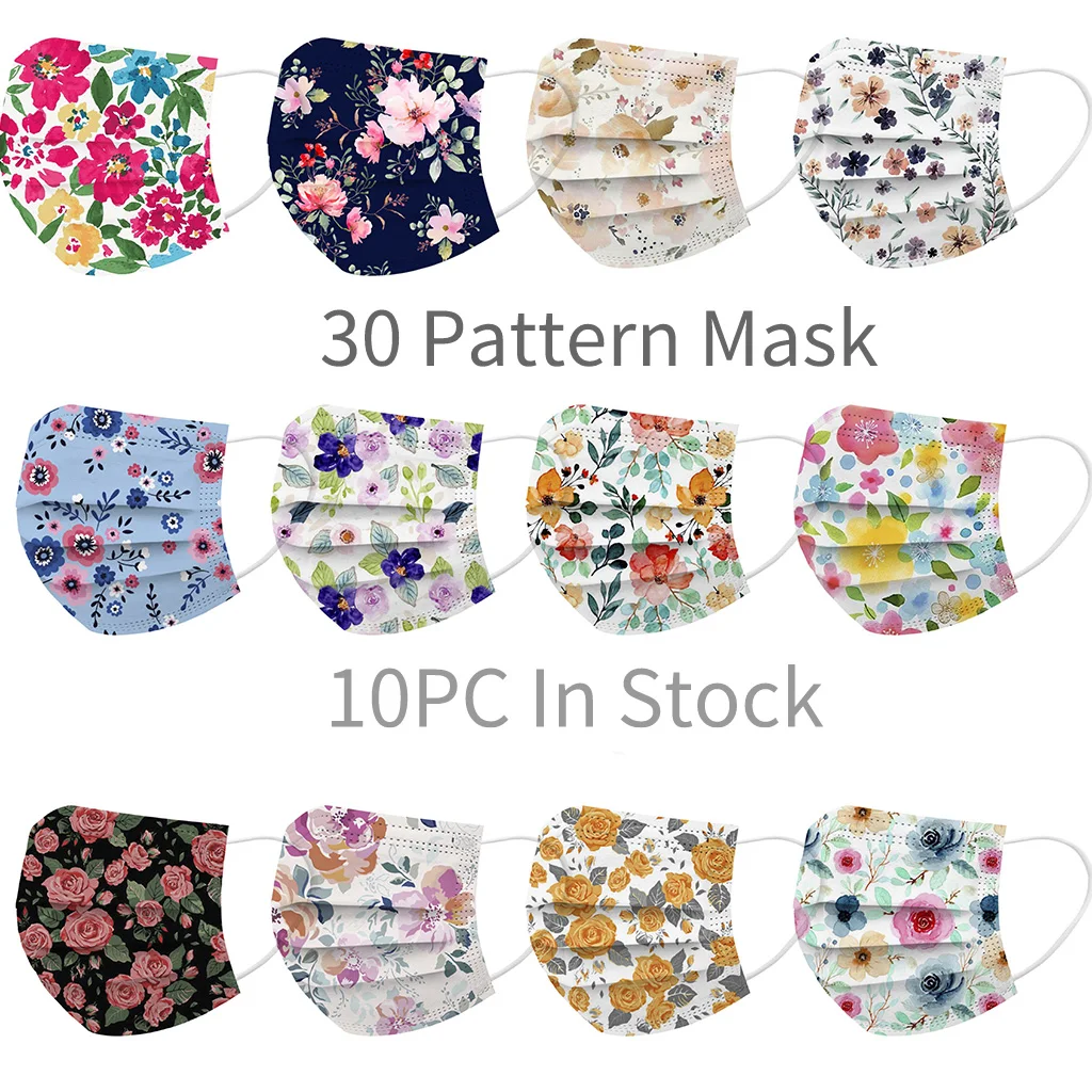 Маски одноразовые с цветочным принтом для взрослых, защитные 3-слойные маски для лица, 10 шт.