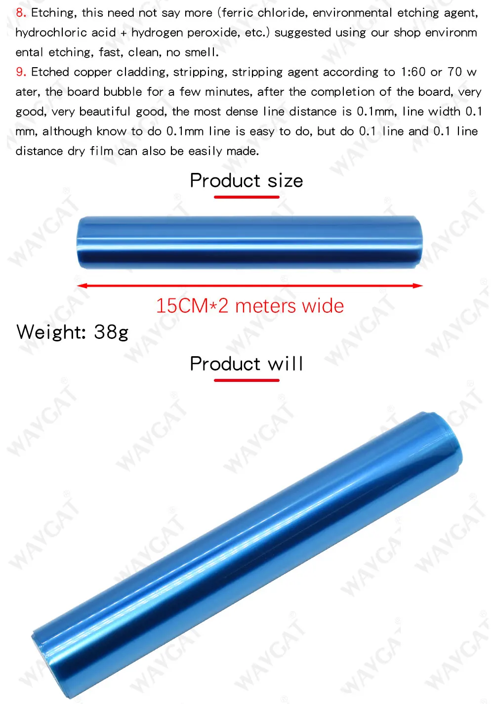 15 см x 2 м печатная плата портативная фоточувствительная сухая пленка для цепи фотопротивления листы 1 м Совершенно новая для покрытия отверстий травление