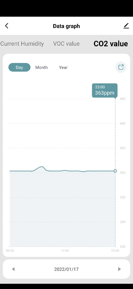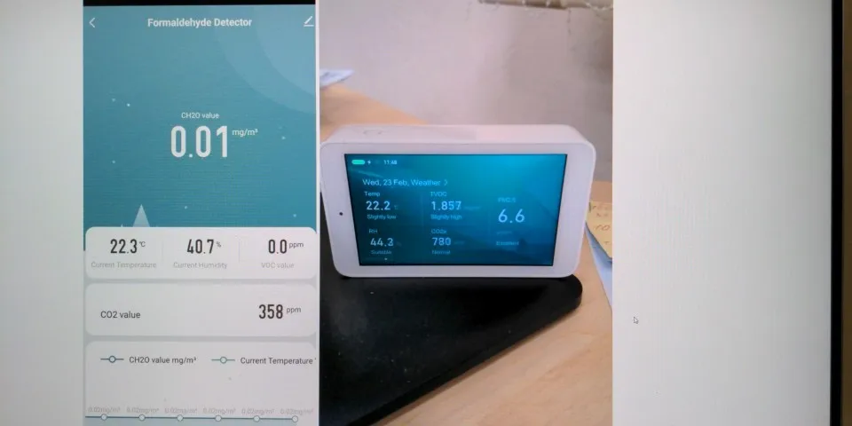 Измерение CO2 не является реальным, постоянно показывает 358 и (или) 368 (я Ил 2, показывая то же самое), независимо от того, 4 человека в romm и т. Д .. Приложение и связь с устройством это нормально, возможно, другие значения, такие как VOC... Температура и влажность ок.