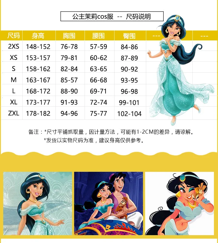 Женский костюм принцессы, бальное платье из жасмина, костюм для косплея Аладина для взрослых, сценические костюмы, одежда для карнавала вечерние, большие размеры