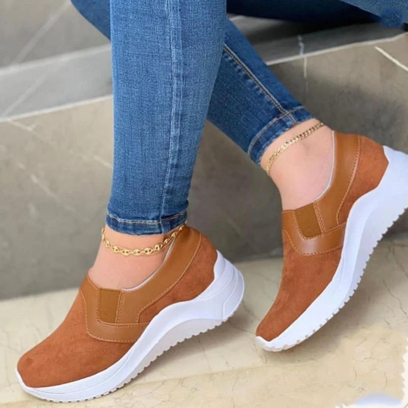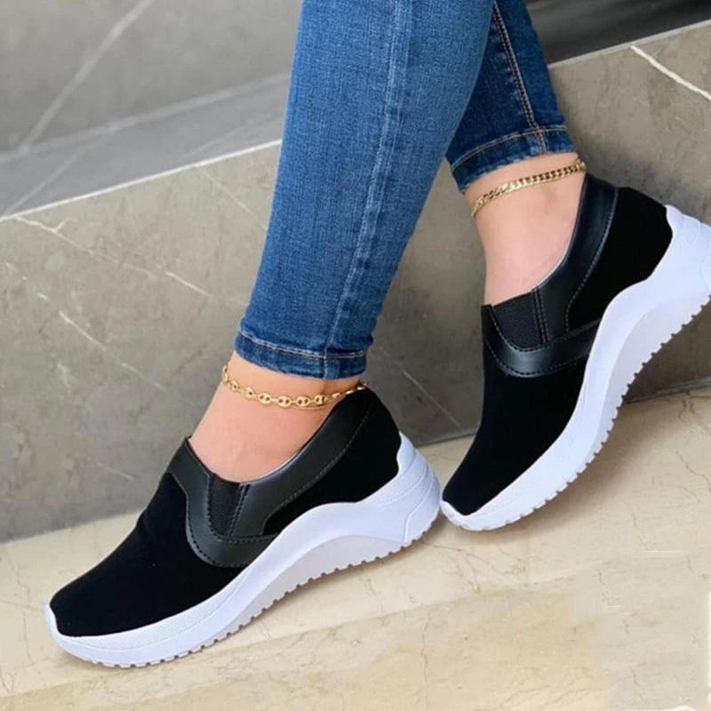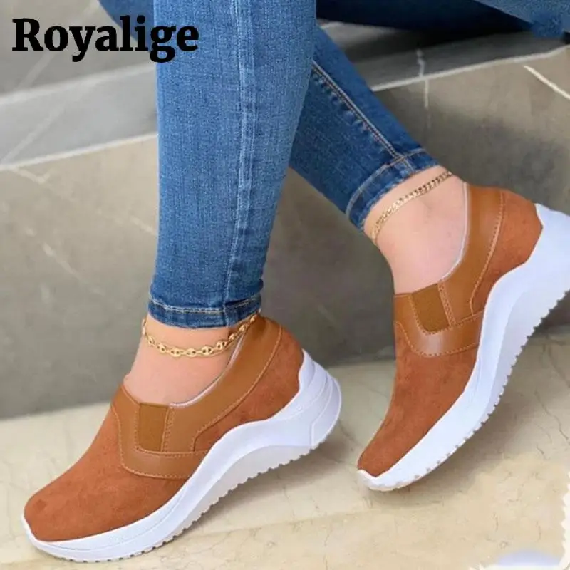 Кроссовки женские на платформе без шнуровки, Вулканизированная подошва, Повседневная Удобная дышащая обувь, однотонные