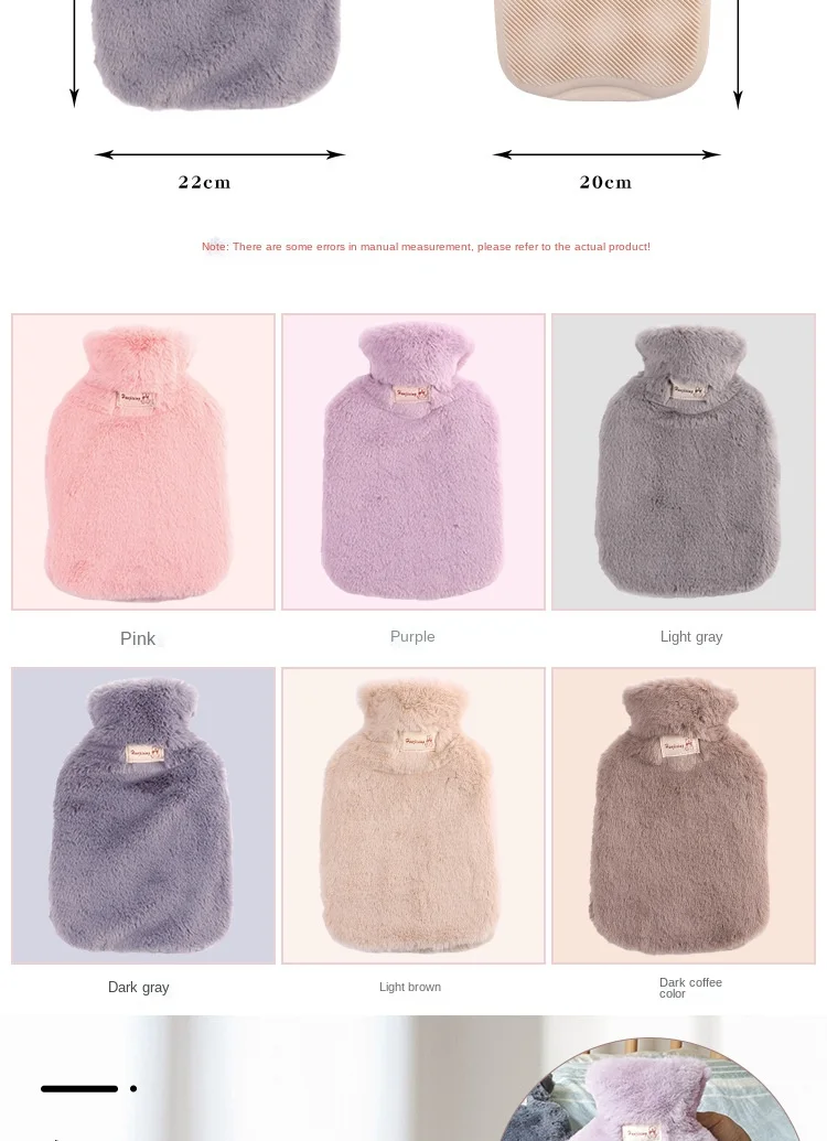 Материал: имитация кроличьего меха, пвхЕмкость: 1000 мл/2000 млХарактеристики: сплошной цвет, высокая плотность, простота в использовании, грелка для рукРазмер: как показаноПримечания:Благодаря светильник и экрана Цвет Товара может быть s светильник ly отличается из-за характеристик монитора компьютера.Возможны незначительные отклонения в размерах из-за различных измерений вручную.Не вводите кипяток в течение 80 градусов цельсия. Объем впрыска воды не должен превышать 2/3 емкости бутылки горячей воды. Вы должны удалить излишки воздуха одновременно.Время сохранения тепла связано с температурой окружающей среды, температурой воды и методом размещения (в кровати или на открытом воздухе), и он будет отличаться в различных условиях.Посылка включает в себя:1 х сумка для горячей воды