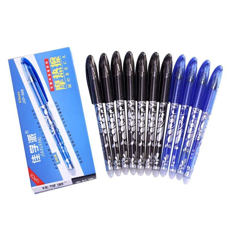 Акция, набор стираемых ручек с моющейся ручкой, синие и черные гелевые ручки для письма для школы, офиса, канцелярские принадлежности, Детская стираемая ручка