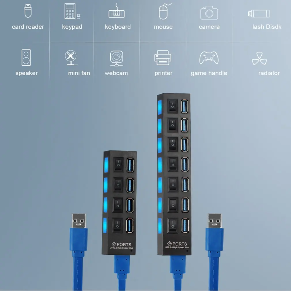 USB 3,0 концентратор 3 0 концентратор Мульти USB разветвитель 47 портов расширитель несколько USB 3,0 Hab адаптер питания USB3.0 концентратор с переключателем для ПК дома