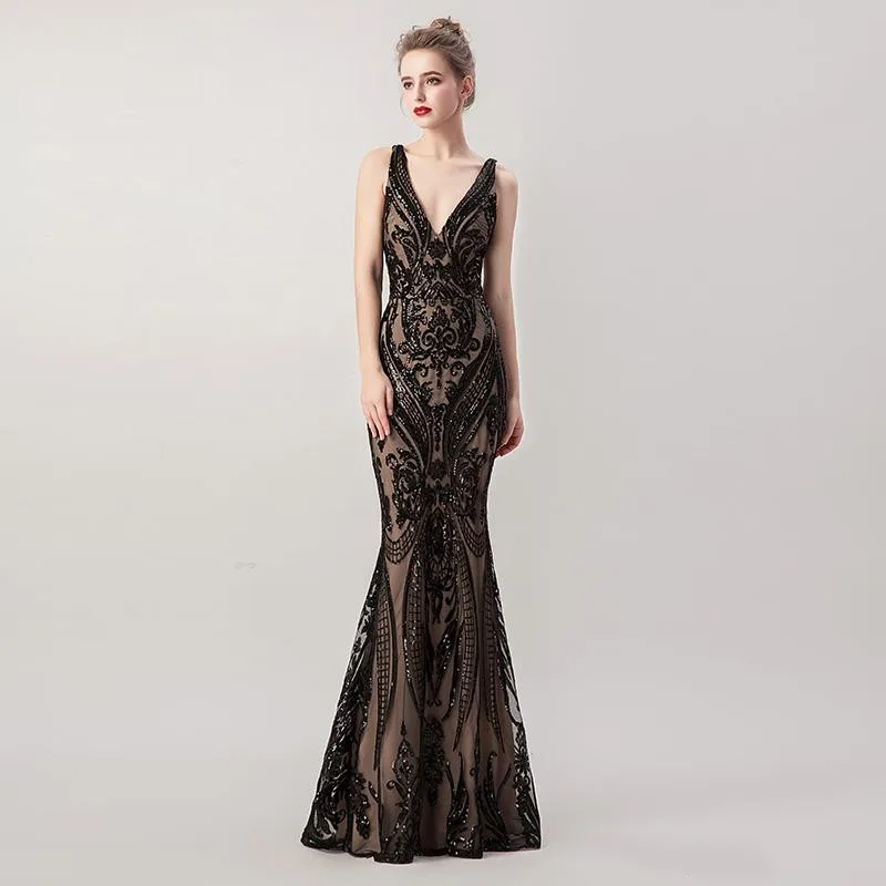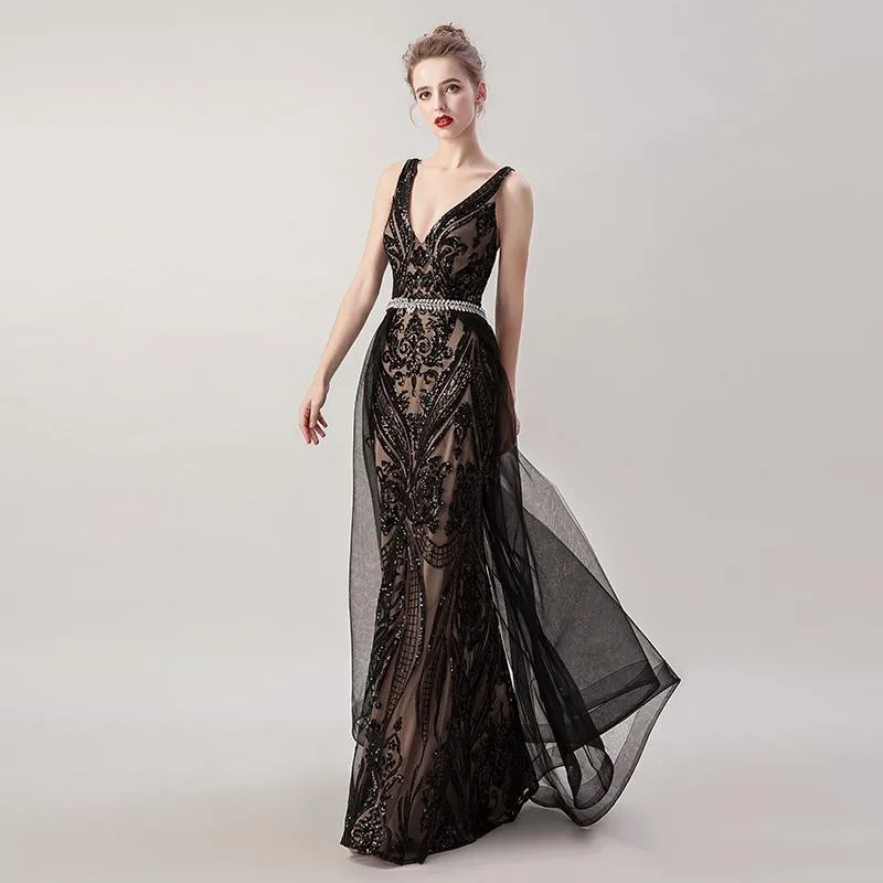 Сексуальные черные Выпускные платья с юбкой-годе, кружевные аппликации V-образным вырезом, женское коктейльное платье для вечеринки, индивидуальный пошив