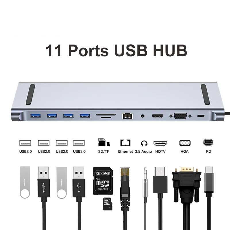 (1) 6-в-1 HDMI Модель: HDMI + USB3.0 * 1 + USB2.0 * 1 + PD + TF + SD(2) 5-в-1 модель HDMI + RJ45 : HDMI + USB3.0 * 1 + USB2.0 * 1 + PD заряд + RJ45(3) 8-в-1 модель HDMI + RJ45 : HDMI + USB3.0 * 1 + USB2.0 * 1 + PD заряд + TF + SD + RJ45 + PD данных Transmiton(4) 11-в-1 B модель HDMI + RJ45 : HDMI + USB3.0 * 1 + USB2.0 * 3 + PD заряд + TF + SD + RJ45 + VGA + AUX