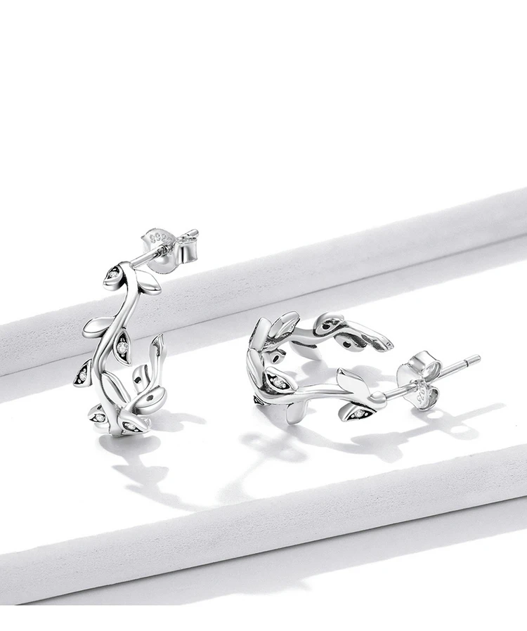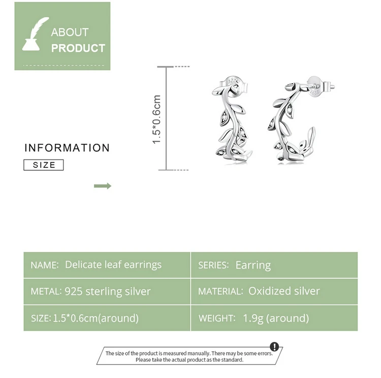 Женские серьги-гвоздики в виде листа розы, из серебра 925 пробы