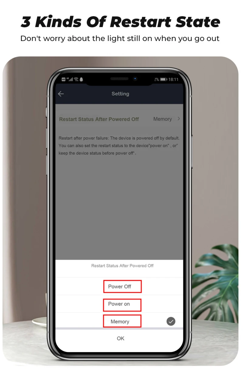 Управляйте включением и выключением устройства, синхронизацией, обратным отсчетом и другими функциями через мобильный телефон. Пока мобильный телефон имеет сеть, модуль переключателя дома можно контролировать по всему миру.