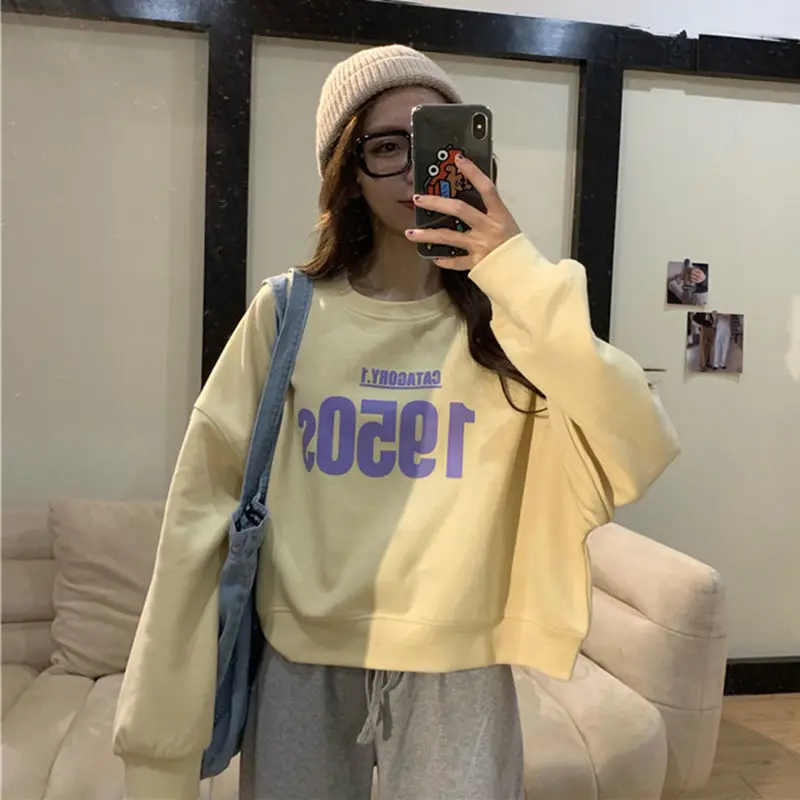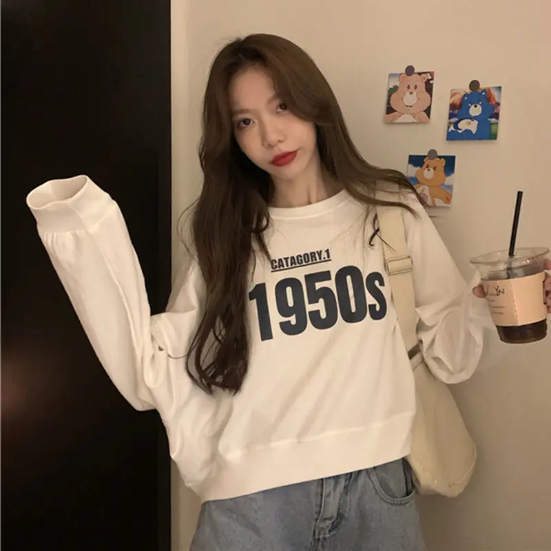 Новинка 2022, Женская толстовка, короткая весенняя одежда для маленького человека, тонкий белый топ с длинными рукавами и надписью