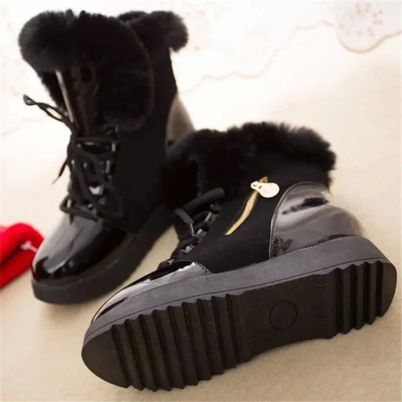 Женские ботинки на платформе, Теплые ботильоны на толстом меху, зимняя обувь, 2022