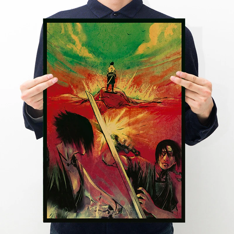 Винтажный постер из искусственного Наруто, аниме, ниндзя, Учиха, Саске, украшение комнаты, живопись, интерьер для дома, настенные картины