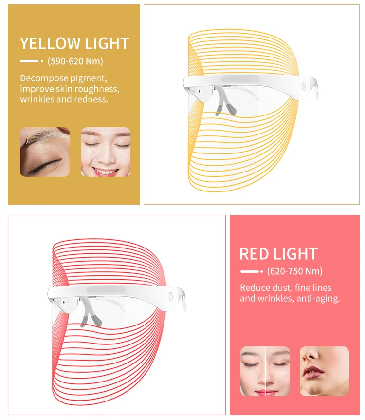 1. Светодиодная фотонная терапия, комфортное теплое легкое лечение.2. Нано-Складная световая технология: это не прямая лампочка. Он принимает нано-складной легкий дизайн, и цвет света мягкий и не режет глаза, и не влияет на внешнюю линию зрения.3. Может подключаться к зарядному устройству, подключению и компьютеру с помощью usb-кабелей, предлагаем вам использовать в любое время.4,3 спектроскопия большой длины волны: трёхцветный спектр волн играет символическую роль.5. Маска здорова для кожи, структура рамы позволяет носить ее стабильно и комфортно.6. Слепой открытый сенсорный переключатель: Нет необходимости снимать крышку кнопки управления, выберите режим фотон красоты, только нужно коснитесь его, чтобы контролировать.