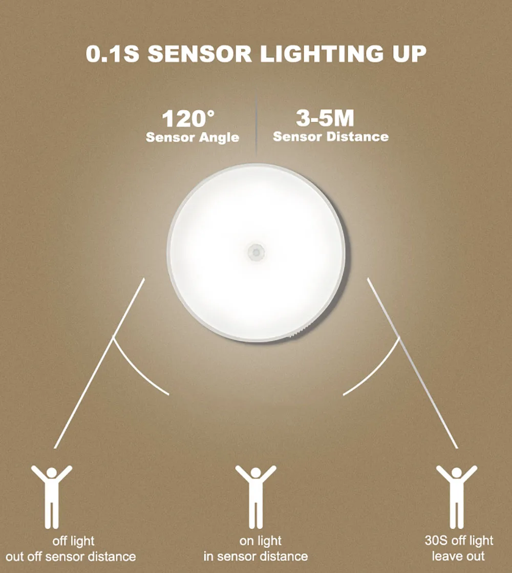 Беспроводной ночник с датчиком движения, круглый светодиодный свети...