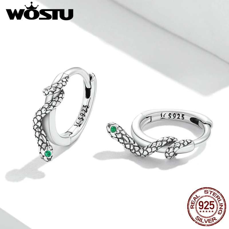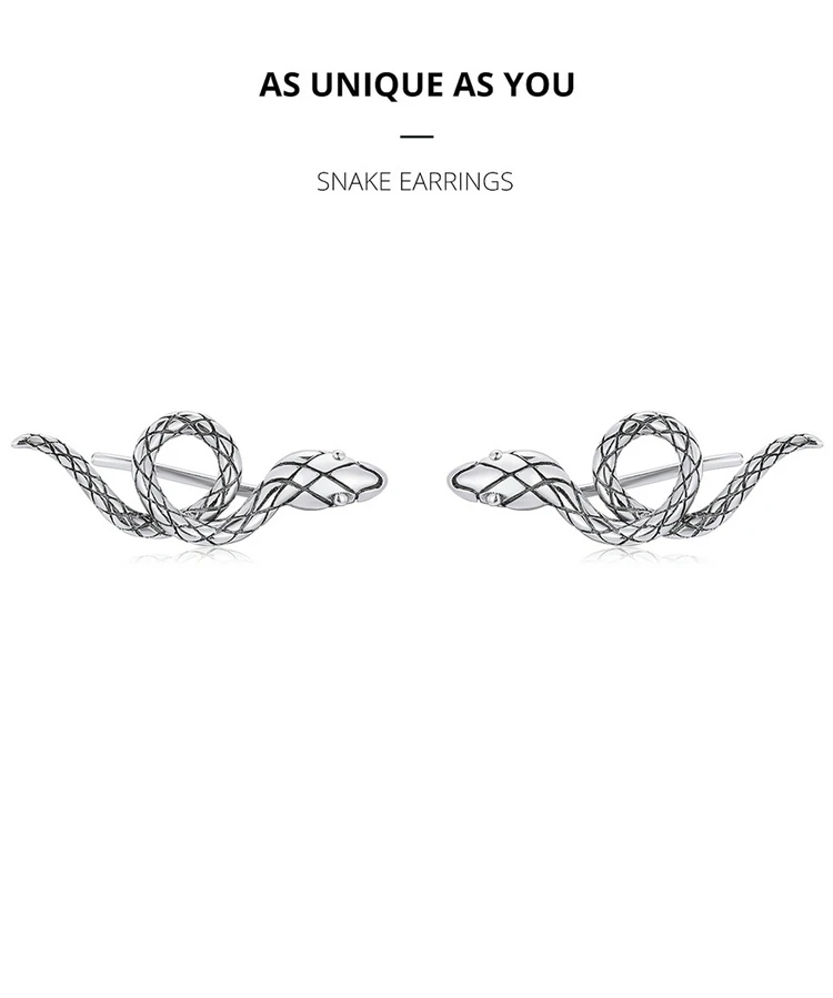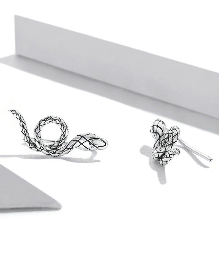 Женские серьги-гвоздики в виде змеи, из серебра 925 пробы