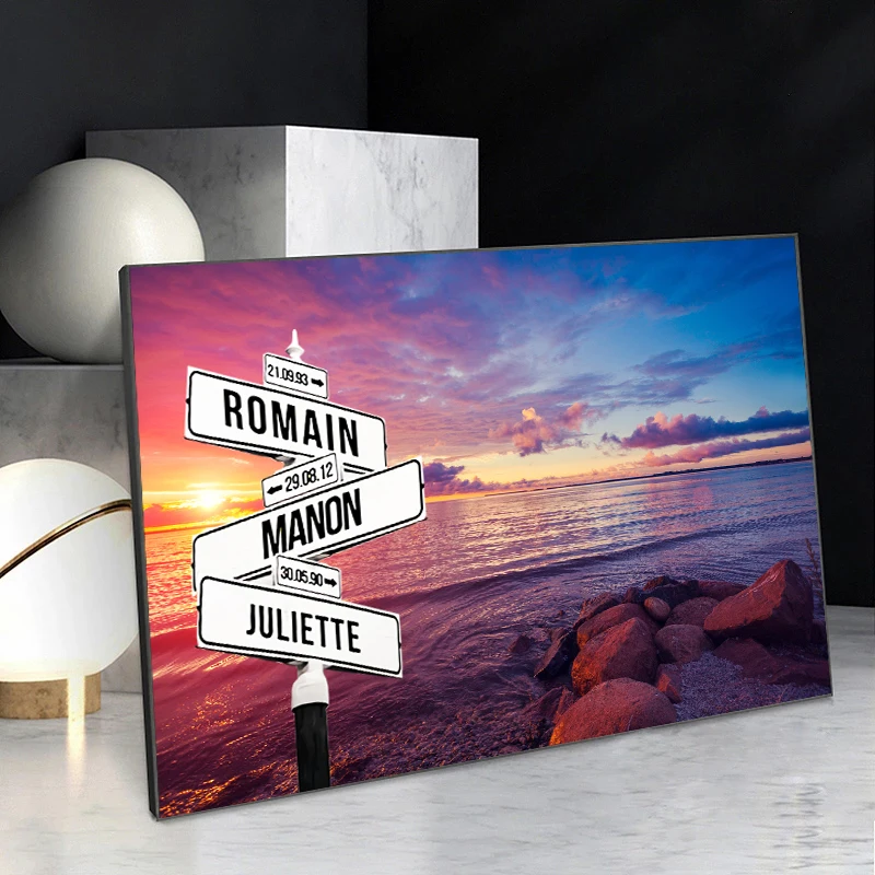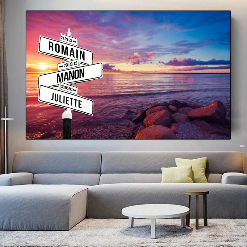 Картина на холсте с именем и датой для 2-5 человек, персонализированная, украшение для дома, праздничный подарок для родителей, значимый дорожный знак, подарок