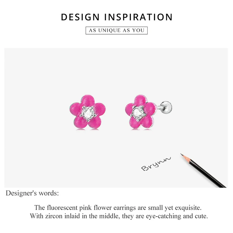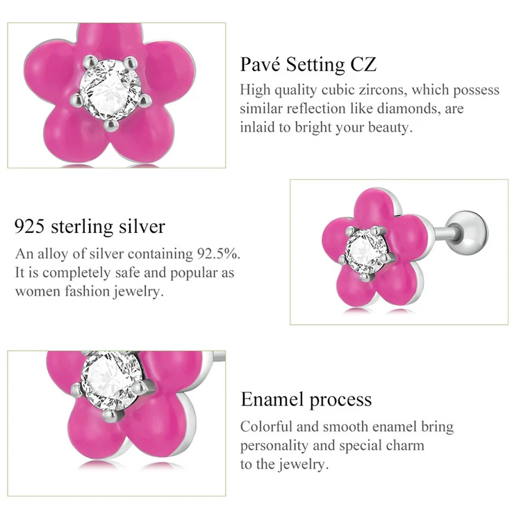 Женские серьги-гвоздики из серебра 925 пробы с розовым цветком вишни