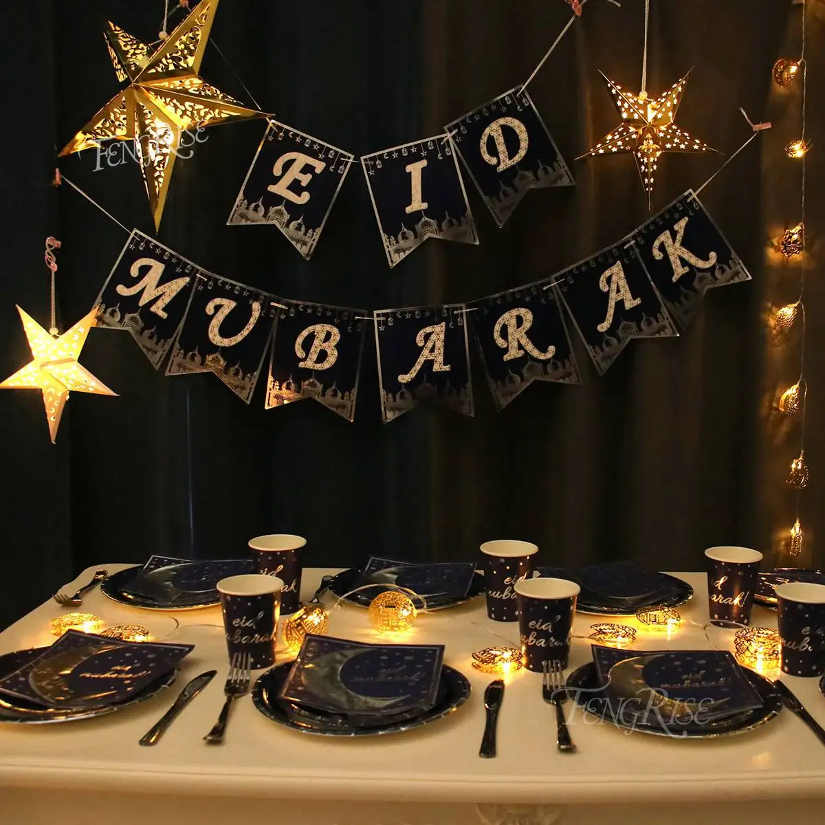 Eid Мубарак баннер набор посуды украшения для Рамадана для дома Рамадан Карим Декор Ислам Мусульманские вечерние принадлежности Eid аль-Фитр подарки