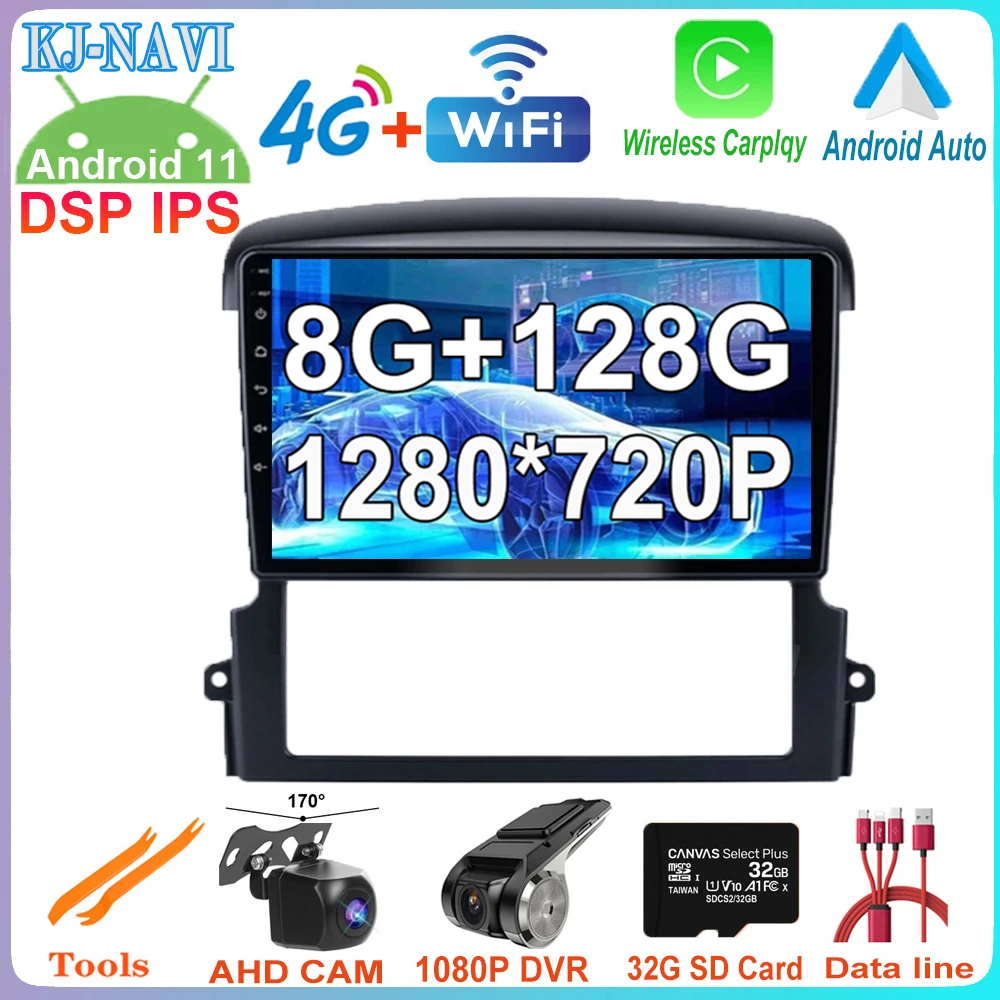 Автомобильный мультимедийный видеоплеер QLED, экран 9 дюймов, Android 11, для Kia Sorento 2004-2008, радио, GPS-навигация, Bluetooth, Wi-Fi