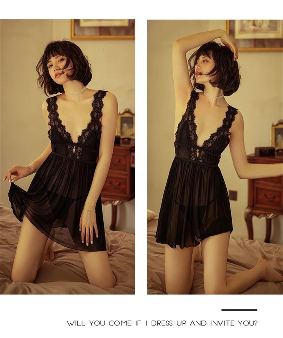 Женские пижамные комплекты из 2 предметов, ночная рубашка с V-образным вырезом, сексуальная ночная рубашка, повседневная кружевная однотонная одежда для сна, домашняя одежда, Пижама, бифуркация, ночная рубашка